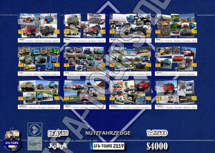 <p>Der schönste und einzigartiger IFA LKW Kalender 2019 mit Bilder von IFA Nutzfahrzeugen, wie IFA LKW L60, W50, S4000, Robur.</p>
