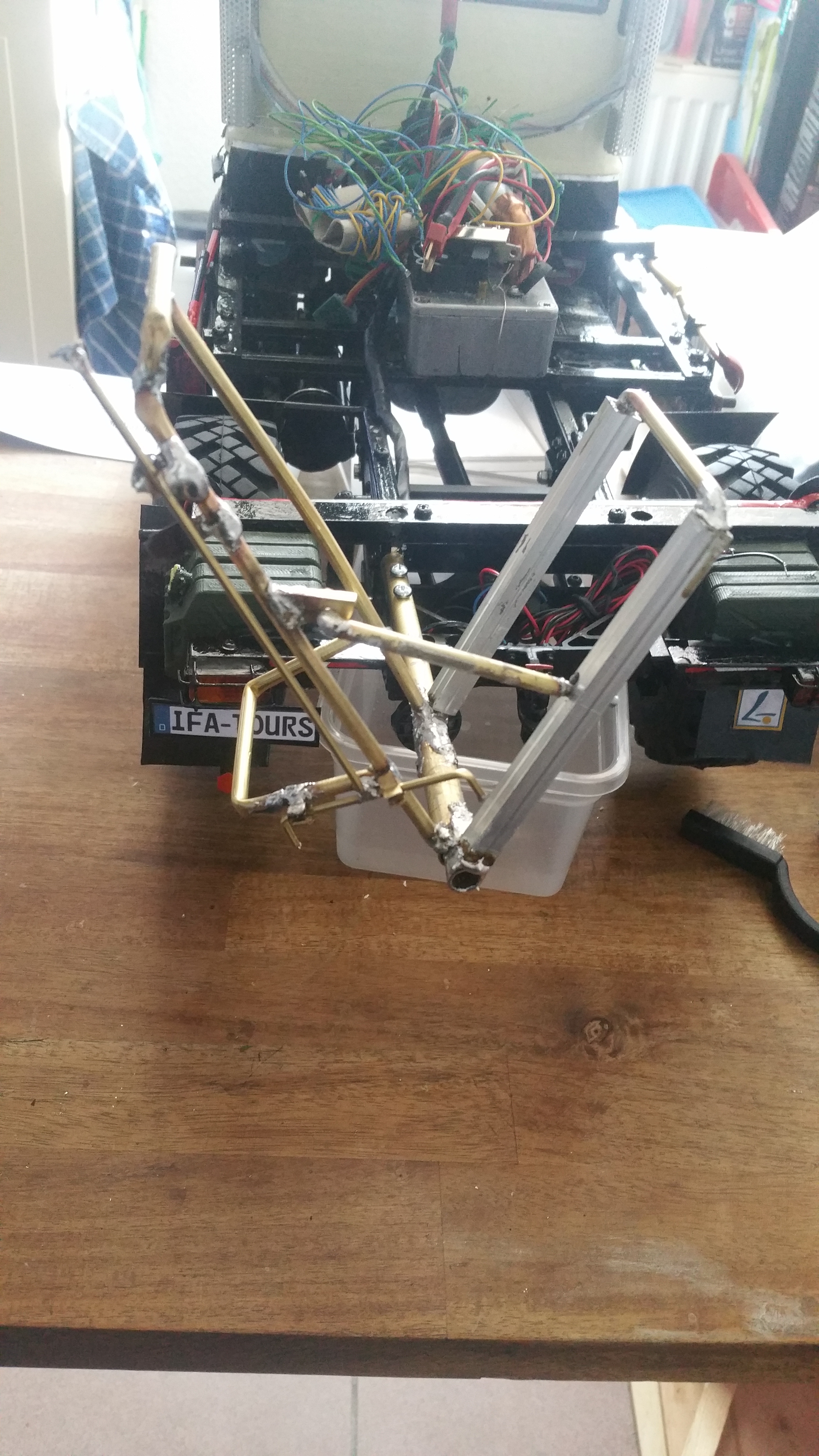 Ich verwende alles was mir in der Garage in die Finger kommt für dieses Projekt und versuche möglichst viel selber zu bauen. Damit versuche ich Kosten zu sparen, denn solch ein Projekt kostet ohnehin viel Geld und bewegt sich im 4 stelligen Eurobereich. Das Modell soll auch mehr meinem originalen LKW entsprechen mit Verschleiß und Gebrauchsspuren, nicht so sehr sehr das technisch sauber und perfekte Vorzeigemodell.