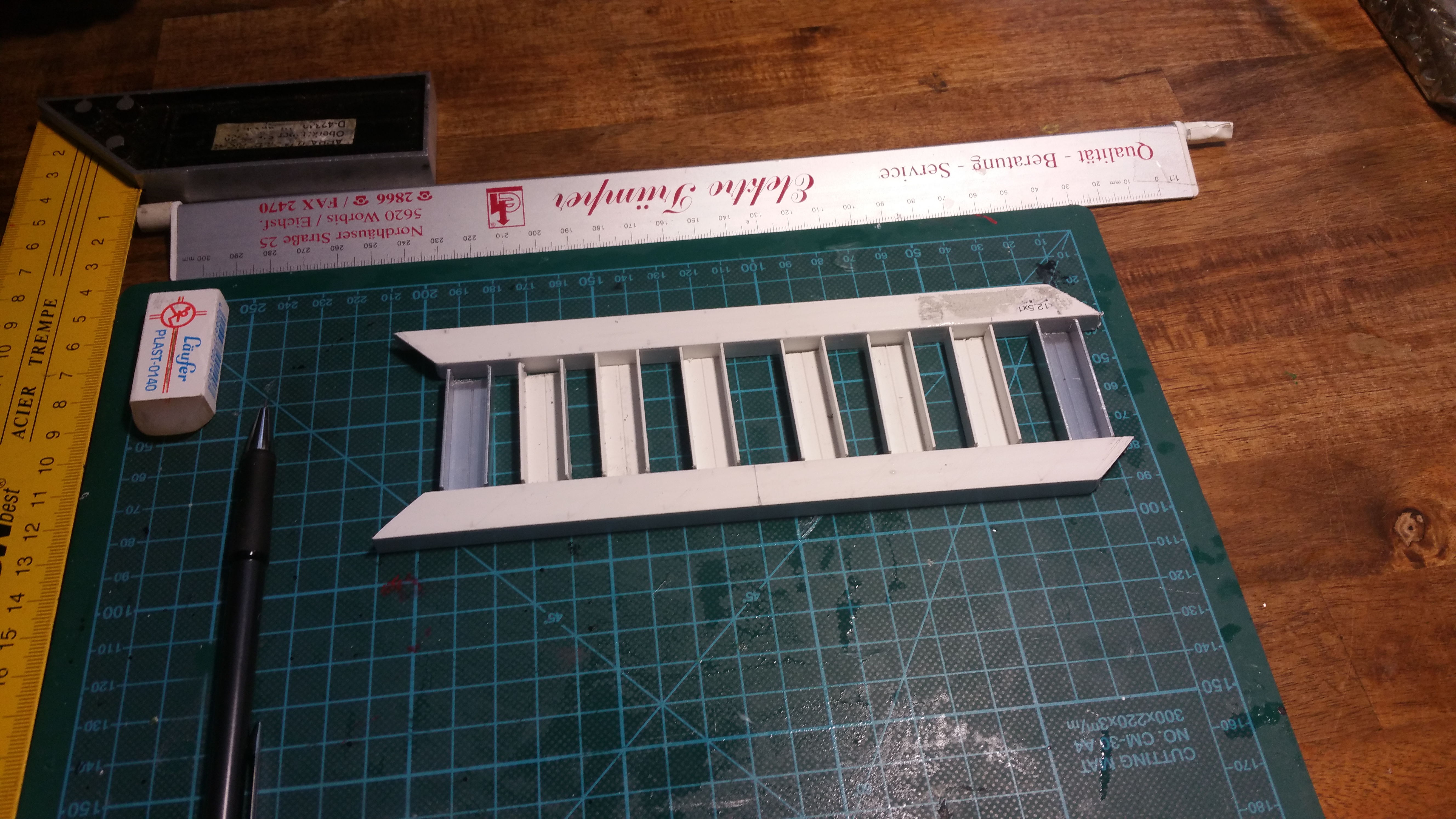 Längsträger für Rückleuchten aus Messingprofilen.