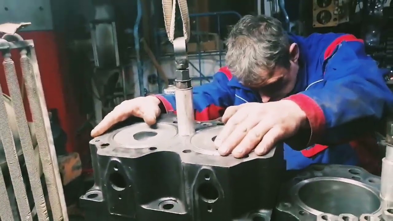 IFA Garage - Aufsetzen Zylinder Blöcke 4VD 14,5 / 12-1 SRW - ZT Traktor 323