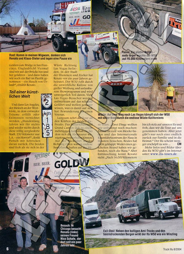 IFA goes to Hollywood. Artikel in der Zeitung Trucker über eine verrückte Amerikareise mit dem IFA LKW W50 durch Nordamerika Kanada - USA - Mexiko -USA.