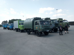 Hallo zusammen, die" Reisegruppe Lutz " hat ihr Nachtlager in Pniewo aufgeschlagen . Nachdem am Morgen kleinere Reparaturen bei der Busverkehrsgesellschaft Eisenhüttenstadt erledigt wurden ging es in zwei Gruppen ab Richtung Grenze . Dort mussten bei brütender Hitze Mautgeräte für Polen besorgt und Zlotys getauscht werden . Eine kaputte Dieselleitung bei mir bescherte der Gruppe auch noch einen unfreiwilligen Aufenthalt . Die Probleme konnten jedoch mit Bordmitteln und Konvoi Schlosser Tottis tatkräftiger Hilfe behoben werden. Nach einem Zwischenstopp zum Tanken , Einkaufen und kühle Getränke besorgen machte sich die Truppe auf in Richtung Pniewo . Kurz vorm Ziel gab es einen Stopp an einem kleinen See . Die zehn IFA s rollten über die sauenge Einfahrt direkt auf die Wiese am Strand. In Deutschland so undenkbar. Herrlich sich bei 36 Grad in die Fluten zu stützen . Kontakt zu den Einheimischen war fix hergestellt,alle supernett . Auch dort gab es wieder bisschen was zu schrauben . Danach konnte man sich im See erfrischen. Leider war ein Stehen über Nacht dort nicht möglich , so fuhren wir weiter nach Pniewo, und bezogen unser Nachtlager unweit des Museums. Morgen ist die Besichtigung unterirdischer Bunkeranlagen in einer Tiefe von 40 bis 60 m geplant. Dort herrschen Temperaturen von 11 Grad. Nach der heutigen Hitzeschlacht klingt das sehr verlockend . So weit von mir heute, Grüße Thomas