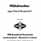BEDIENUNGSANLEITUNG IFA Mähdrescher Type E 174. E 175 und E 177