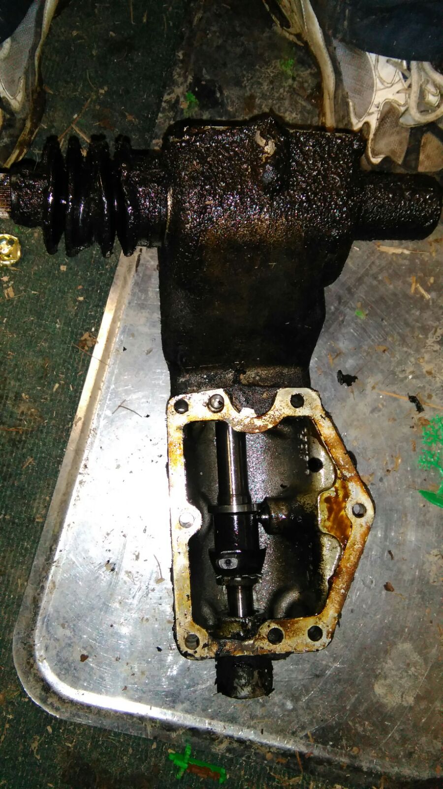 Hier nun ein Bild in das Getriebe. Rein Optisch sieht alles iO aus, allerdings ist das „Blech“ sehr fest, und lässt sich schwer bewegen.