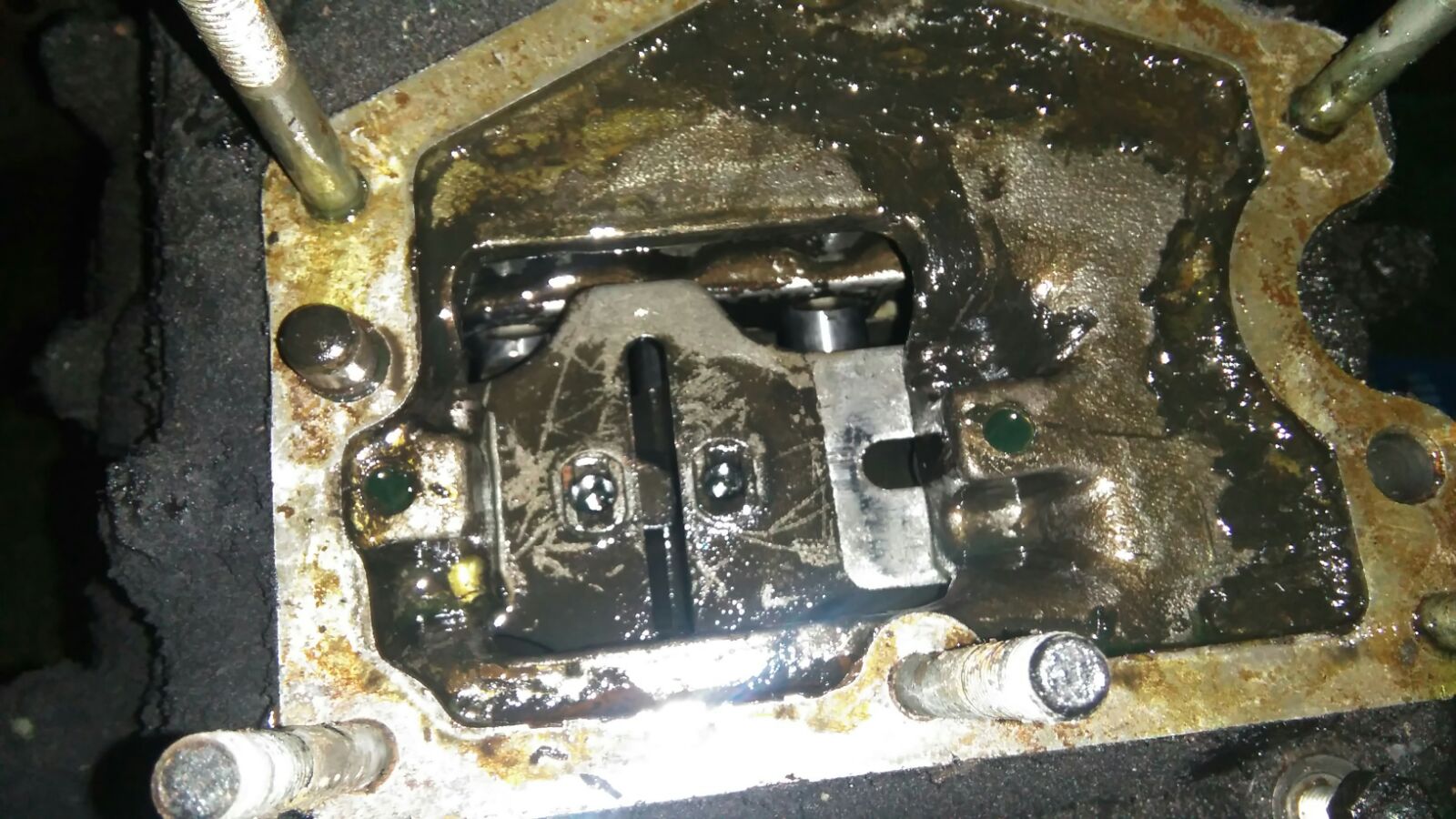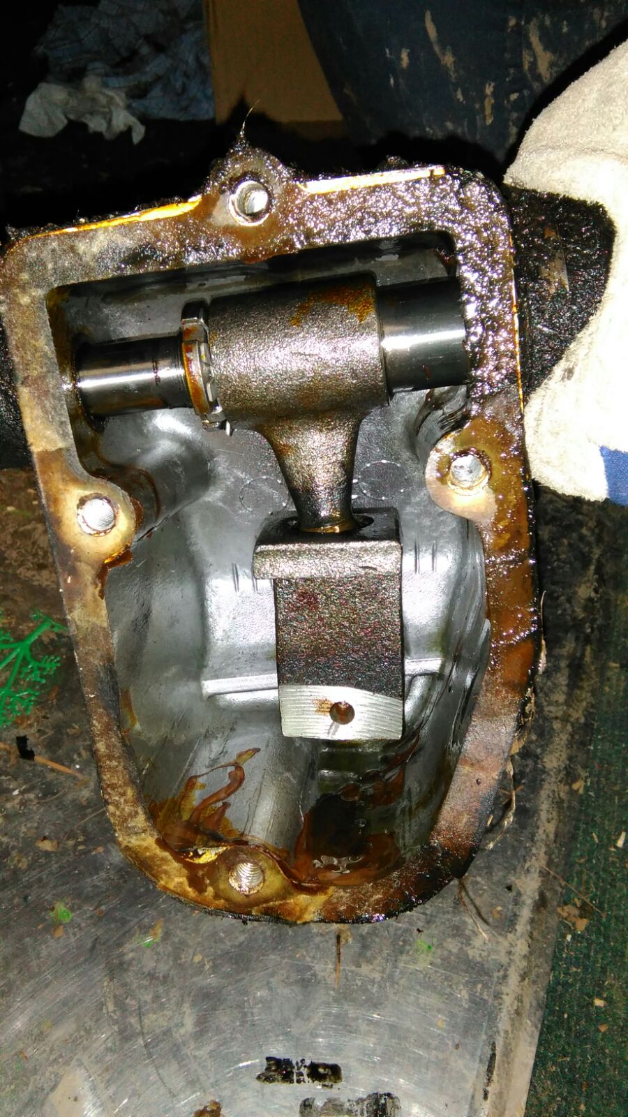 Nebenbei haben wir mal die Ablassschraube abgemacht, um zu prüfen, ob sich Metallabrieb ansammelt. War aber nicht der Rede wert, keine groben Teile, eine Spur Metallspäne bestenfalls.