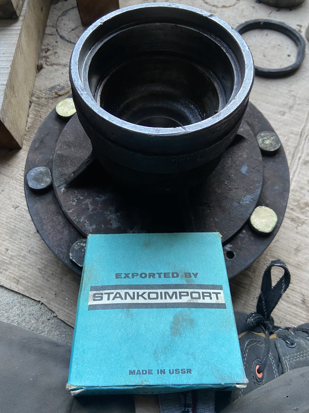 Und entsprechend hab ich jeweils das kleine und große Lager (Radlager) an der Nabe neu besorgt. Die großen sogar noch Made in USSR.