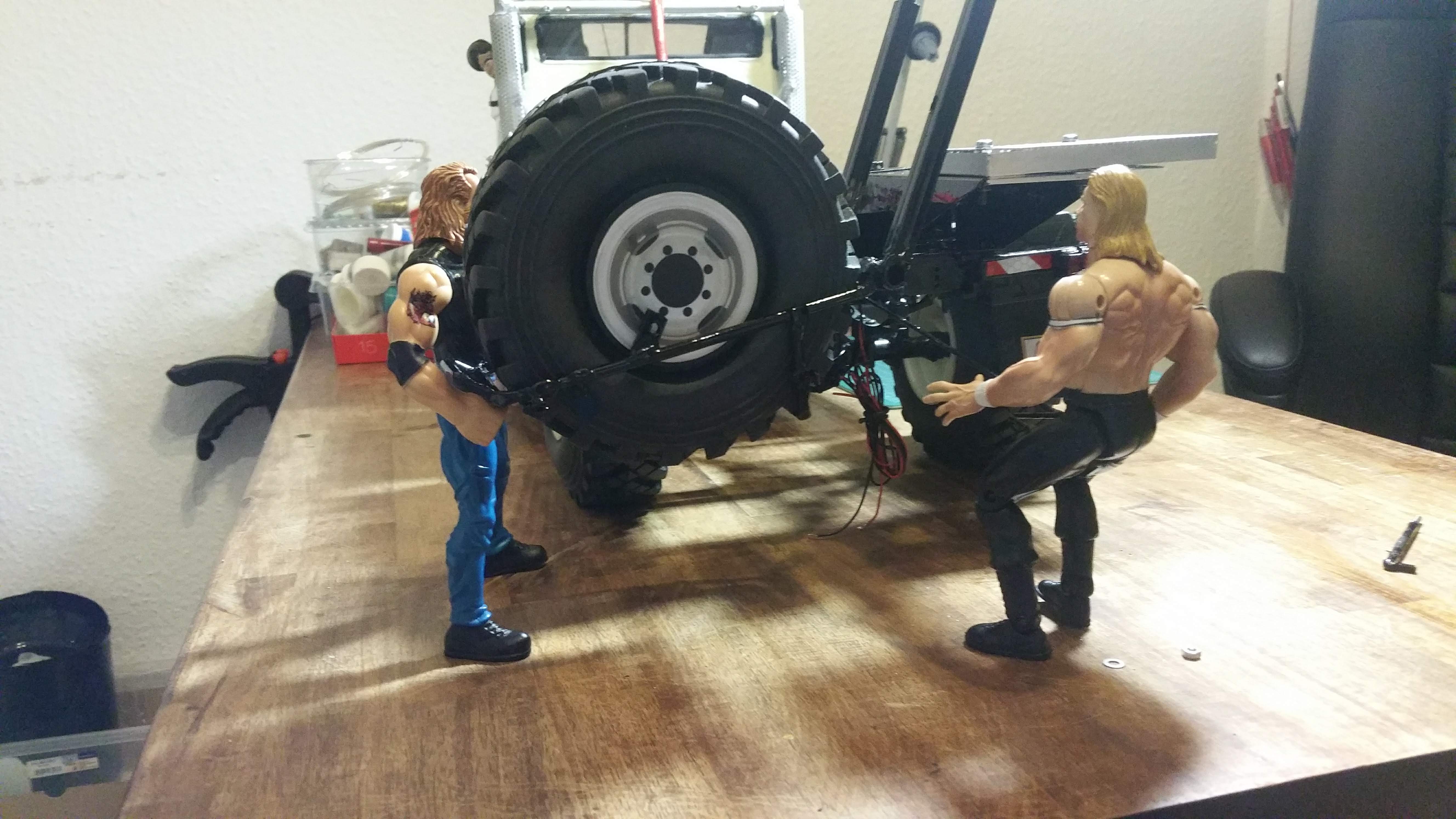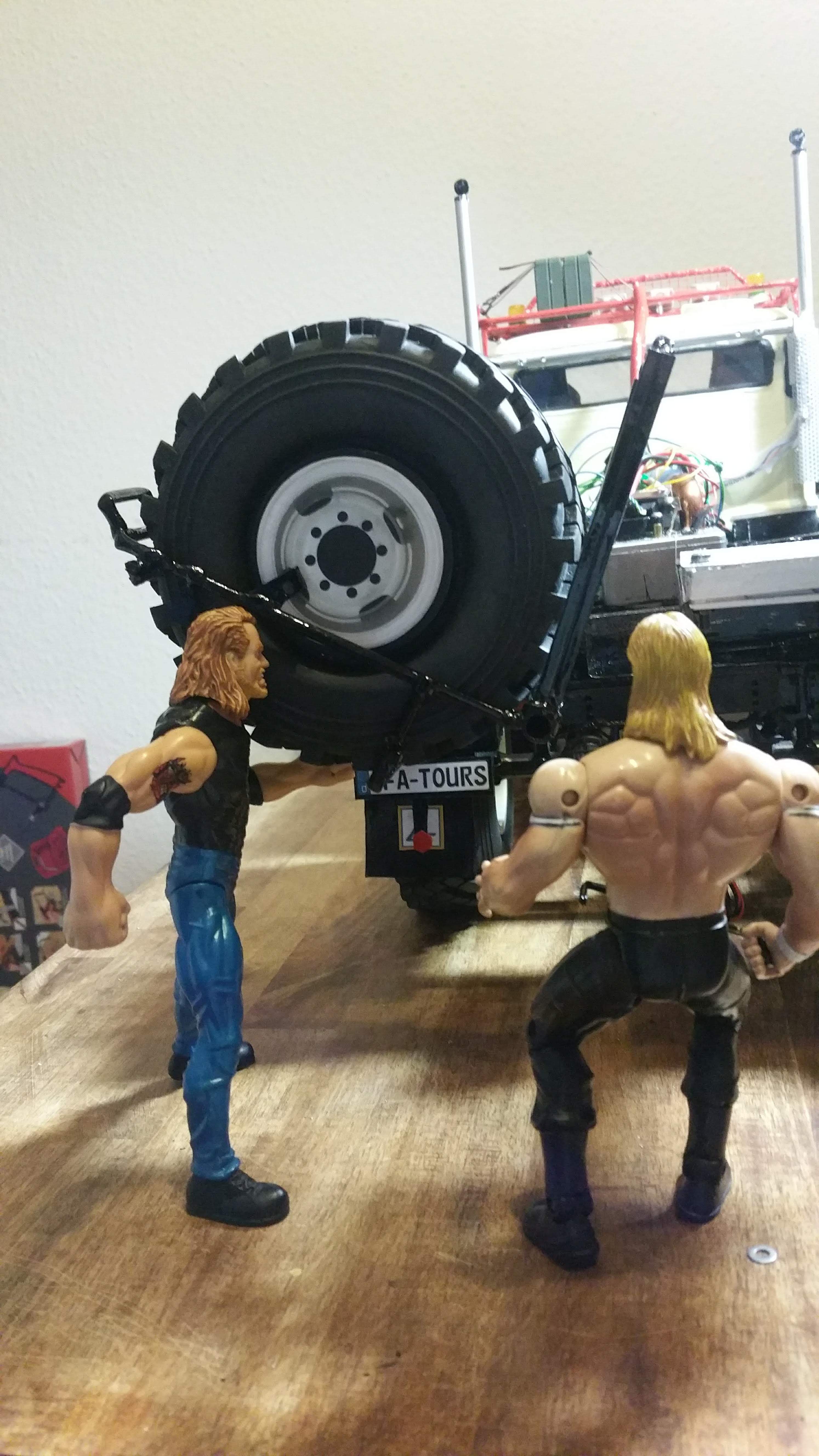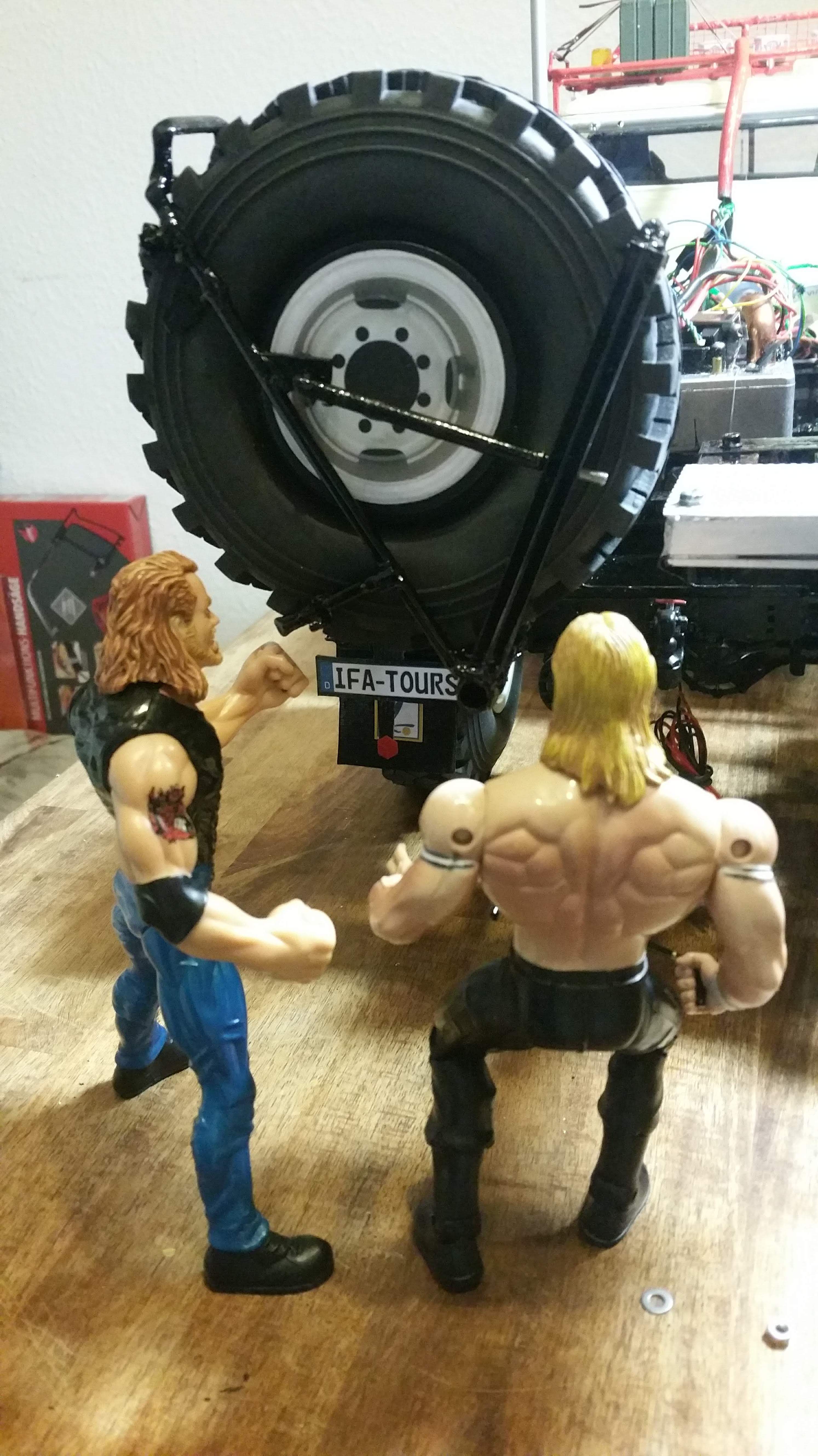 Da es manchmal gar nicht so einfach ist immer alleine am IFA LKW W50 zu schrauben, habe ich mir Hilfe aus der Nachbarschaft besorgt, tolle Jungs aus dem Wrestling Club neben an, die sind ganz begeistert vom W50 und fassen gleich mit an. Gerade beim Ersatzrad kann man Hilfe gut gebrauchen.