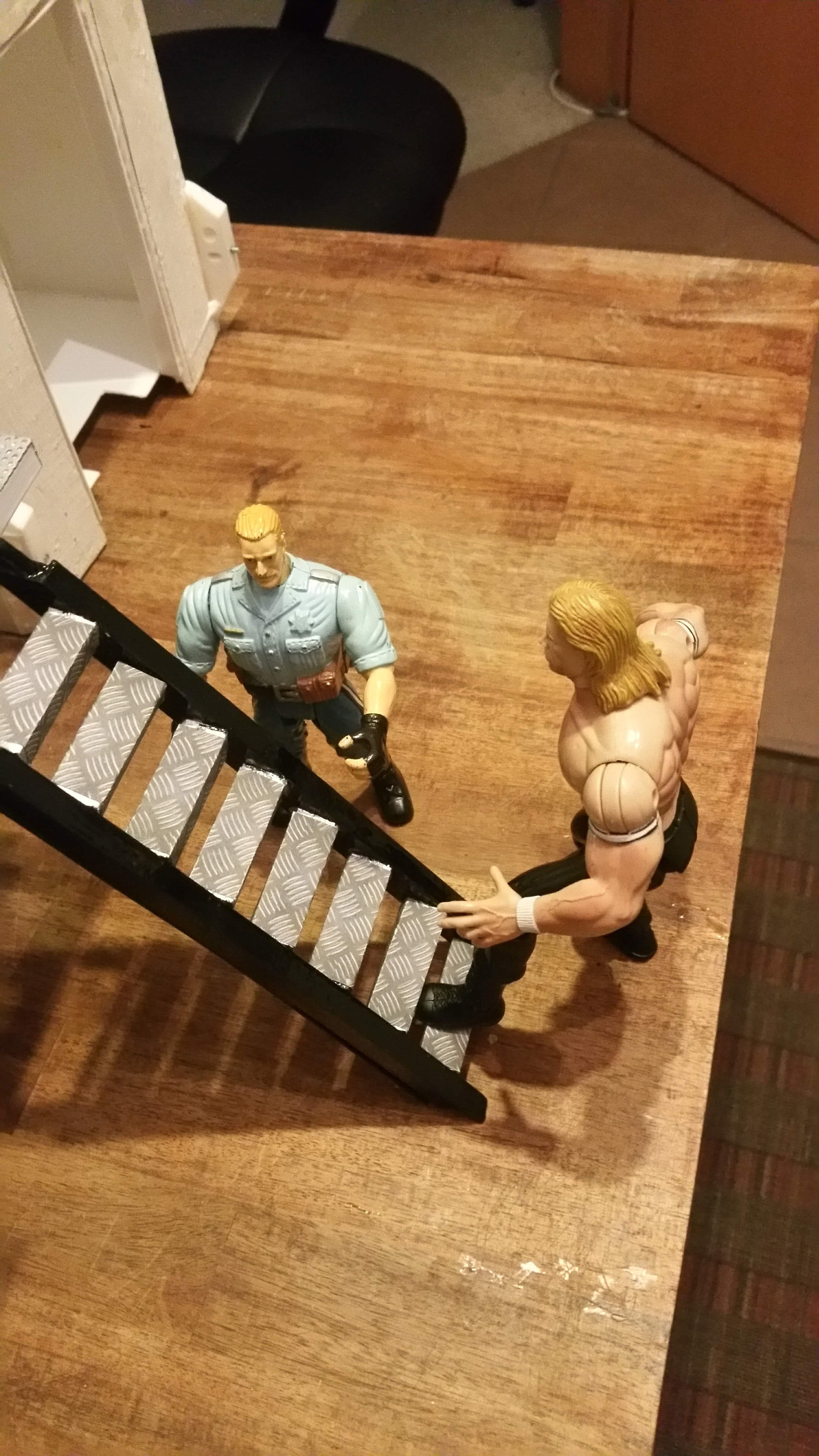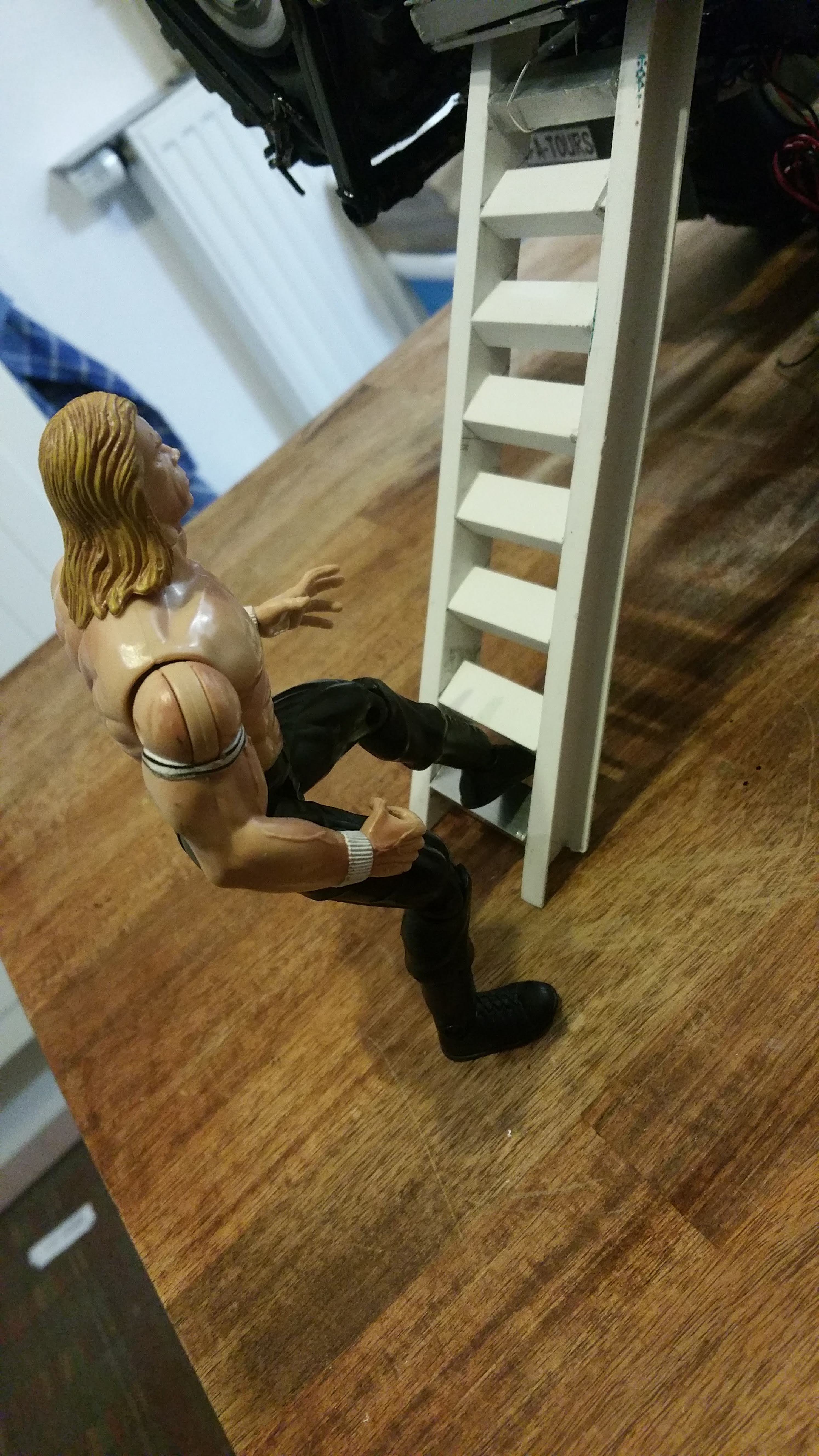 Erster Test der Leiter auf Standhaftigkeit.