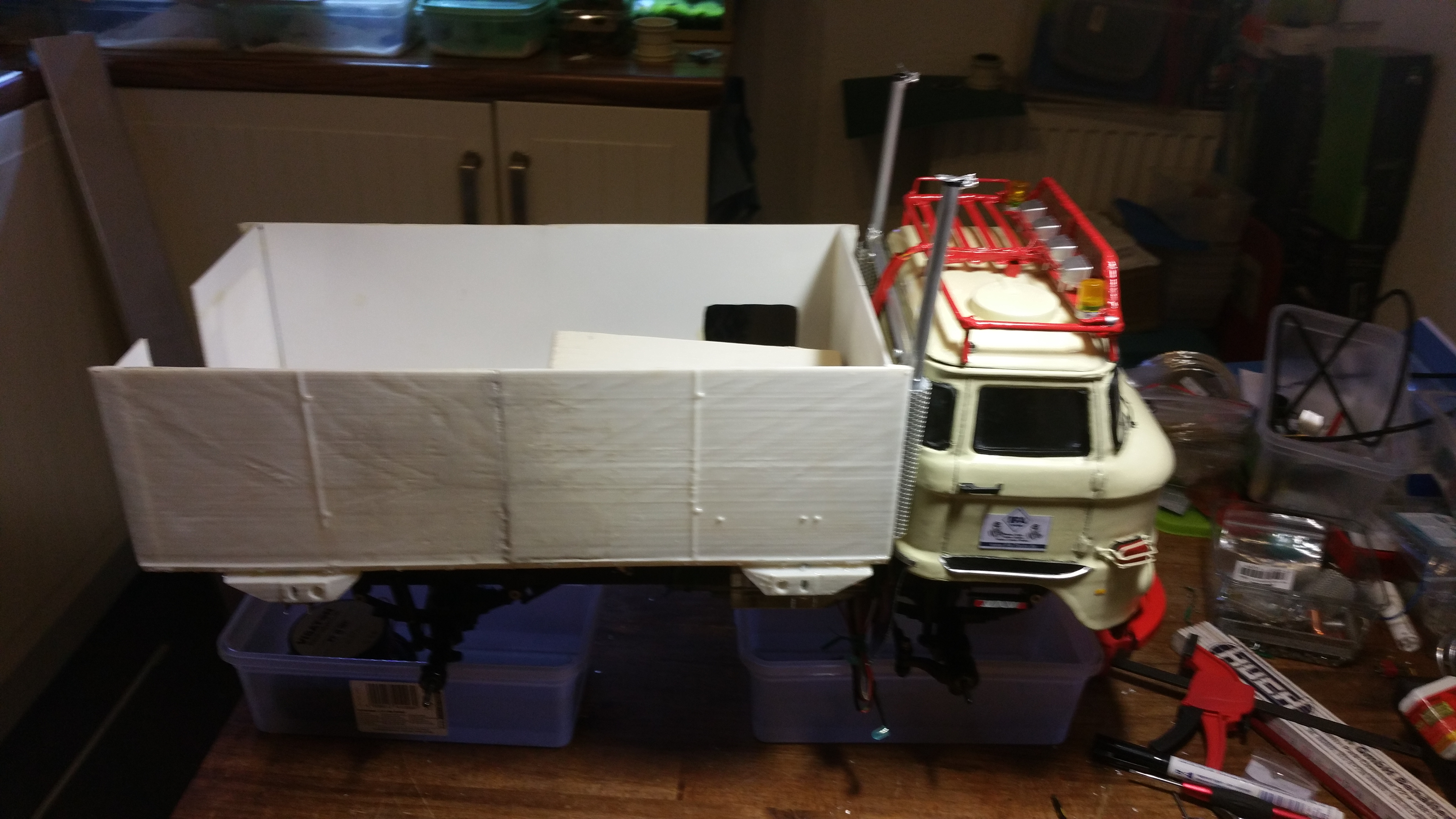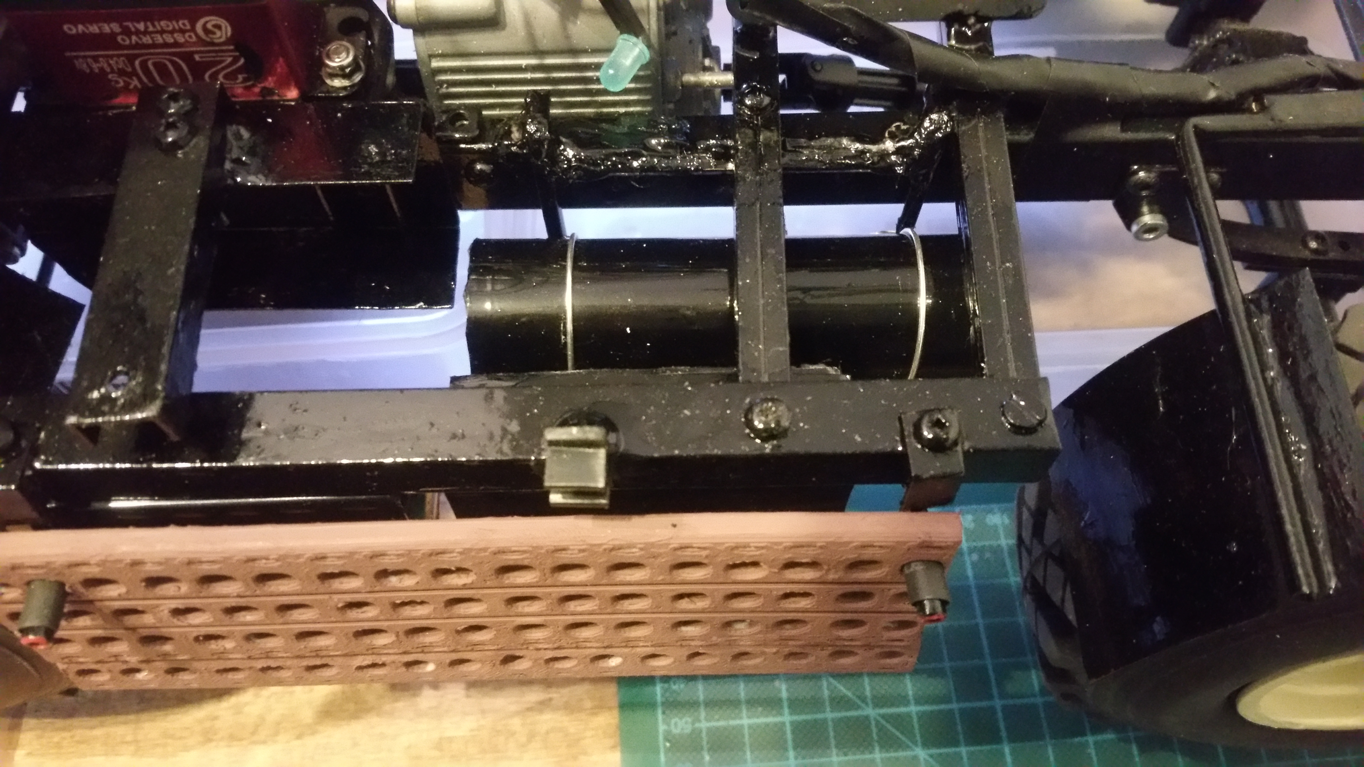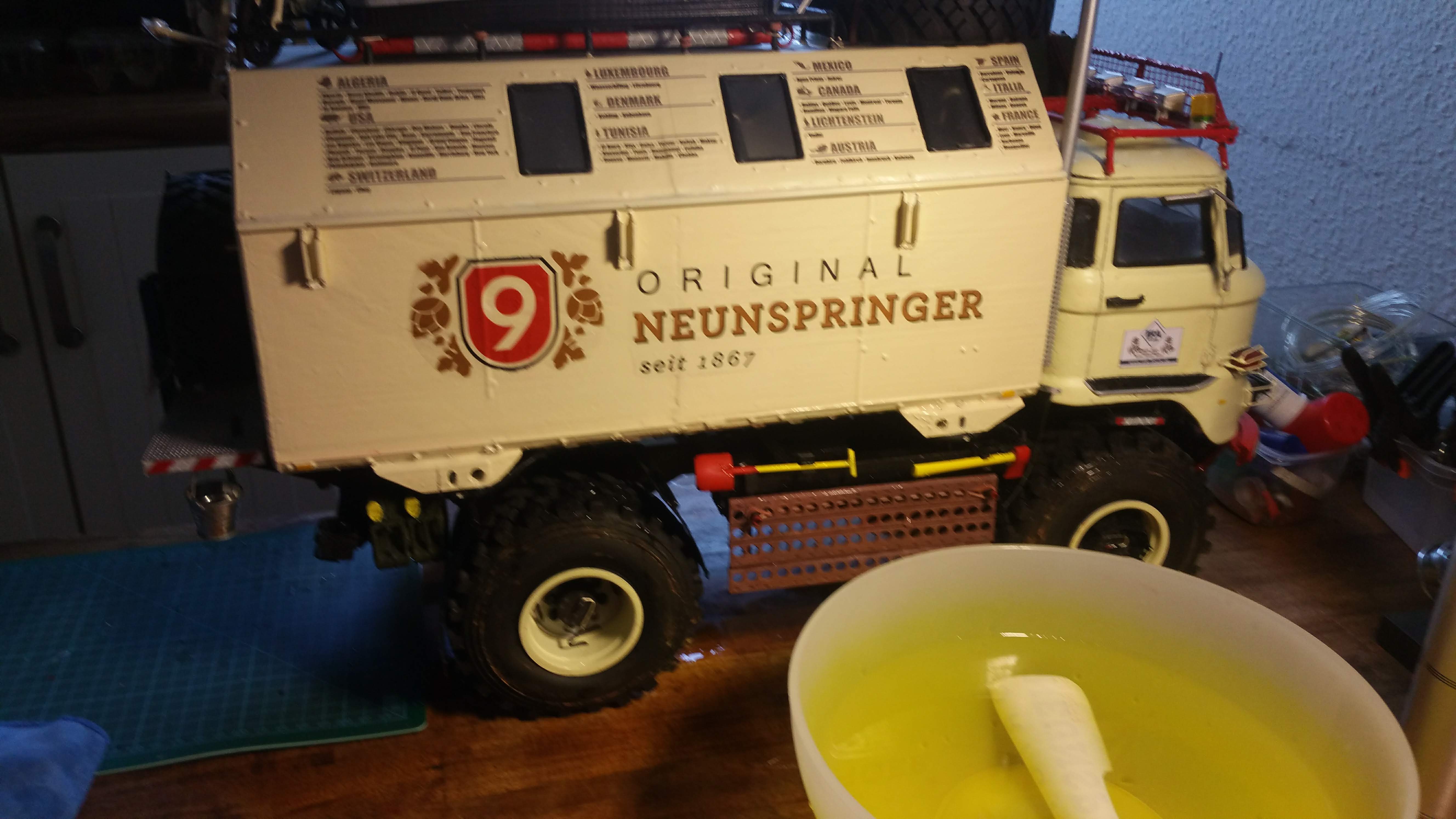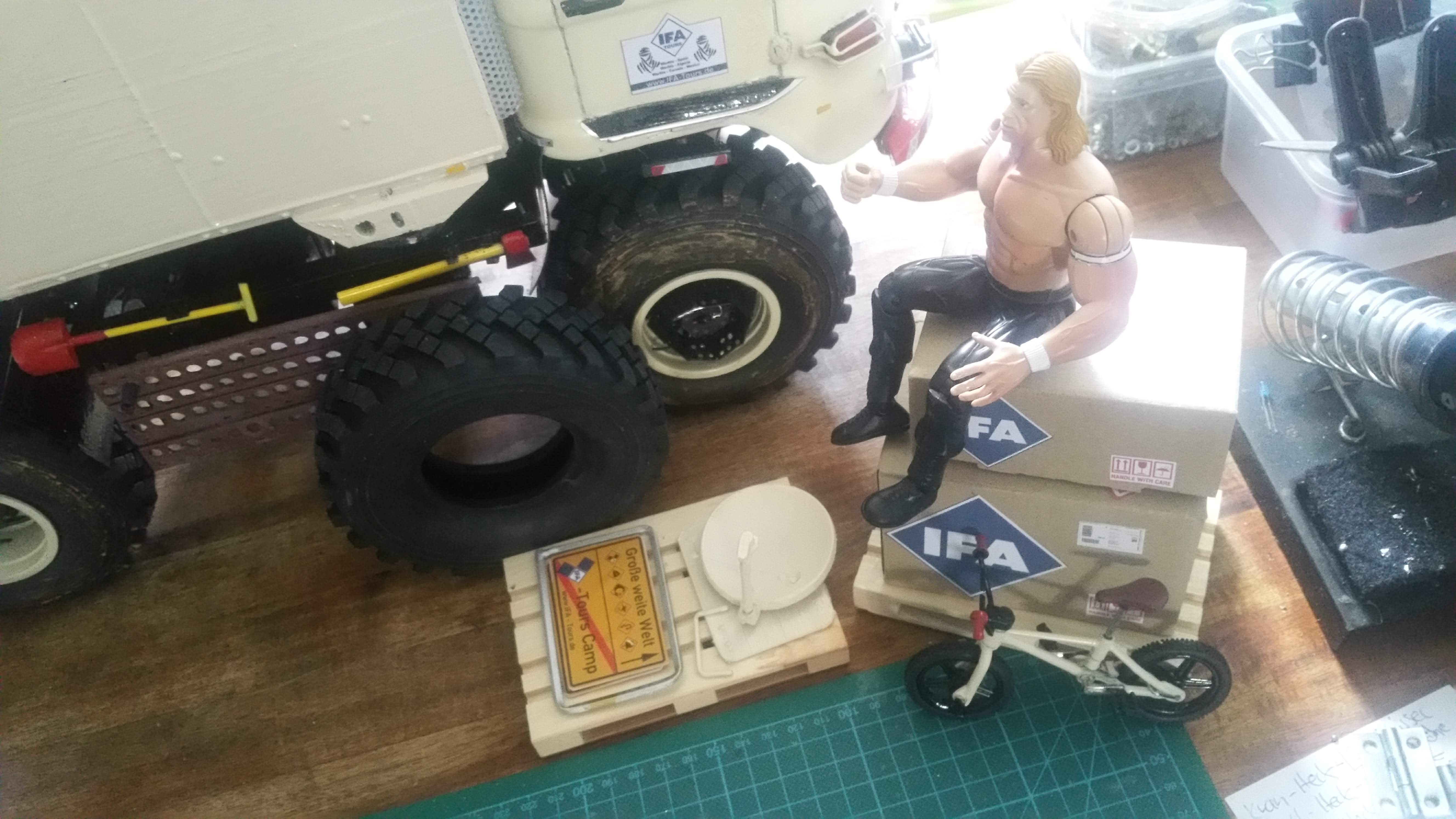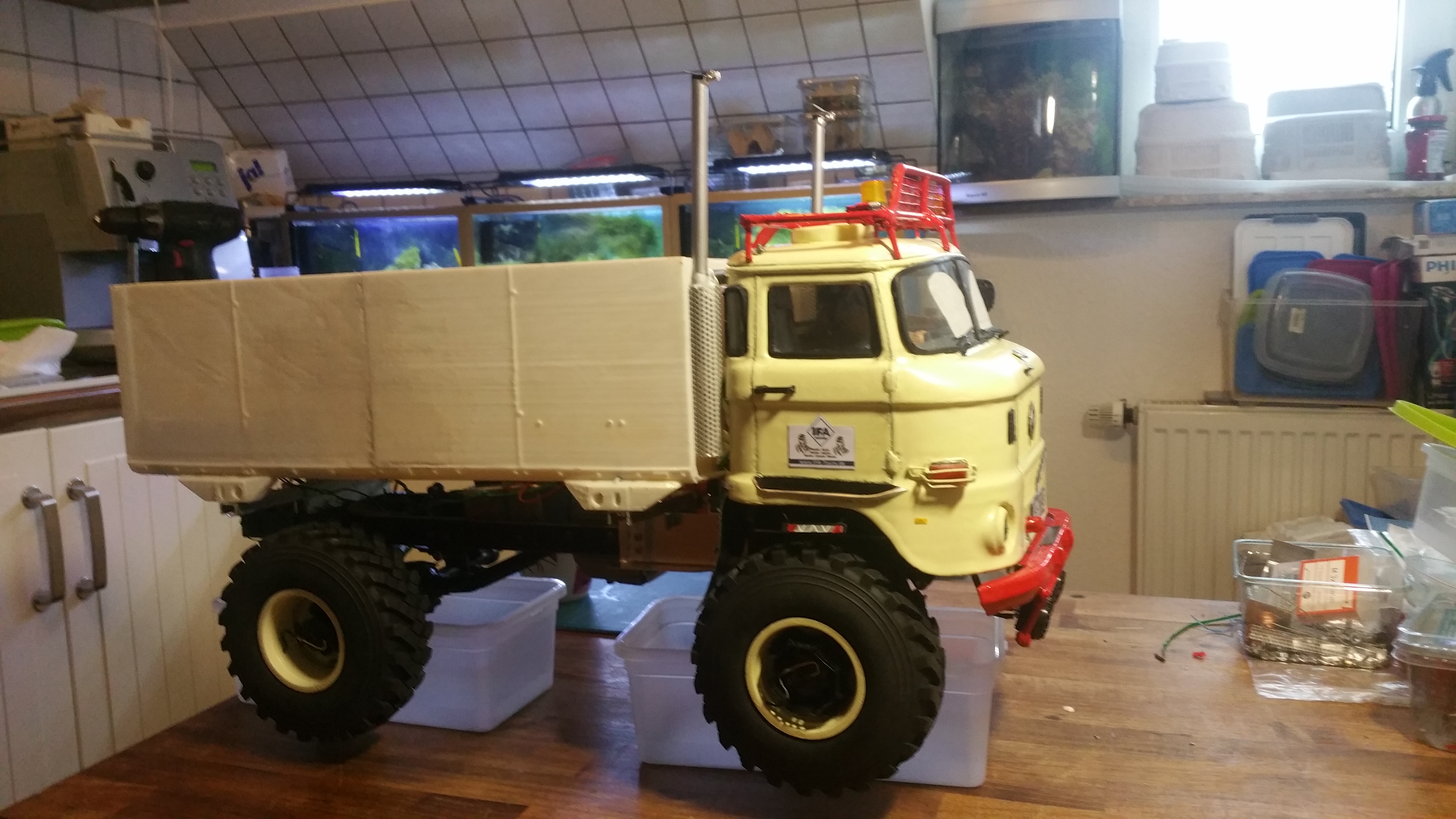 Ich verwende alles was mir in der Garage in die Finger kommt für dieses Projekt und versuche möglichst viel selber zu bauen. Damit versuche ich Kosten zu sparen, denn solch ein Projekt kostet ohnehin viel Geld und bewegt sich im 4 stelligen Eurobereich. Das Modell soll auch mehr meinem originalen LKW entsprechen mit Verschleiß und Gebrauchsspuren, nicht so sehr sehr das technisch sauber und perfekte Vorzeigemodell.