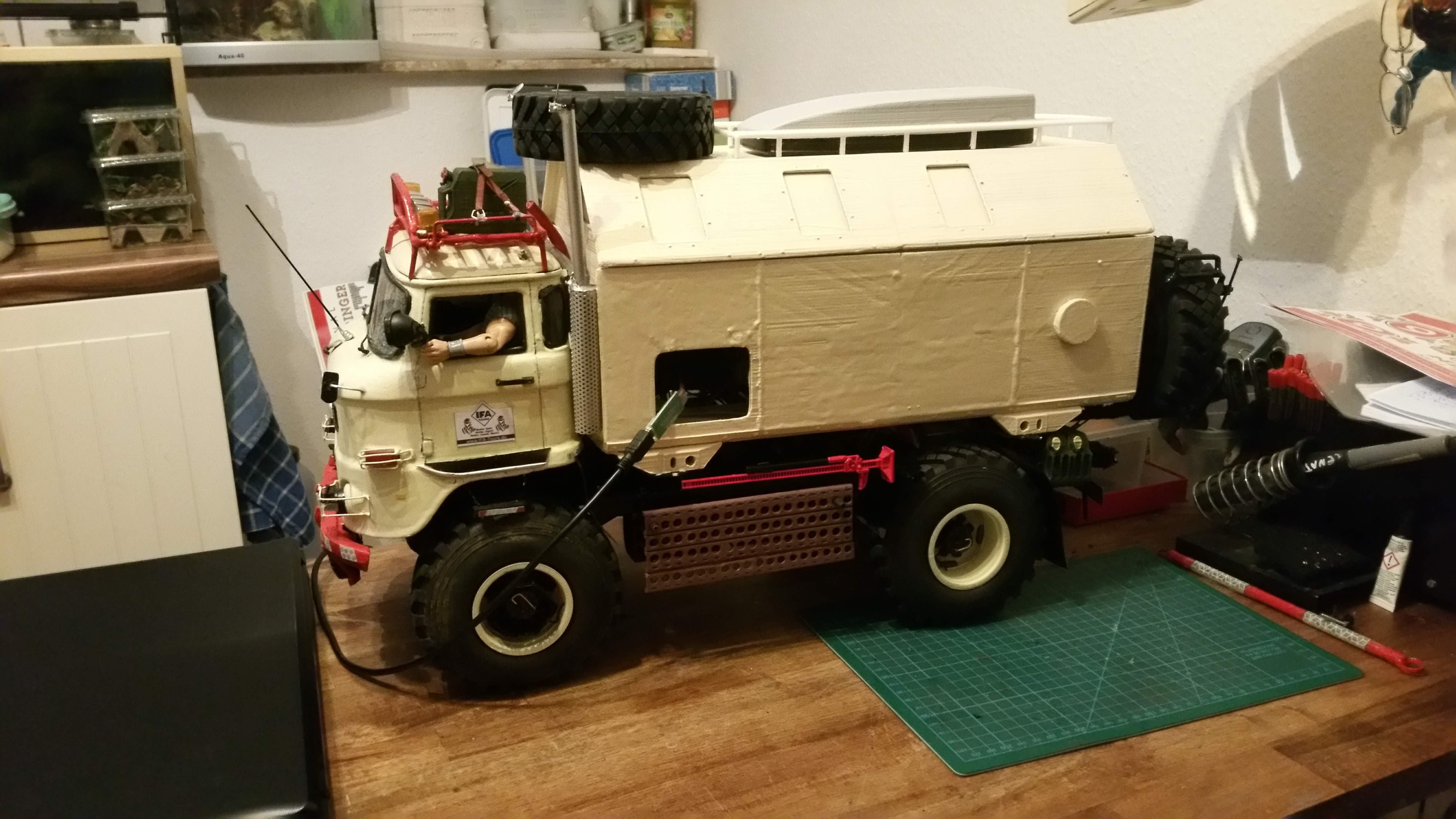 GFK wäre eine Möglichkeit oder 3D Druck? GFK ist aber sehr aufwendig, ich werde es mal mit 3D Druck probieren. Immerhin habe ja meinen IFA LKW W50 schon als 3D Datei vorliegen.
