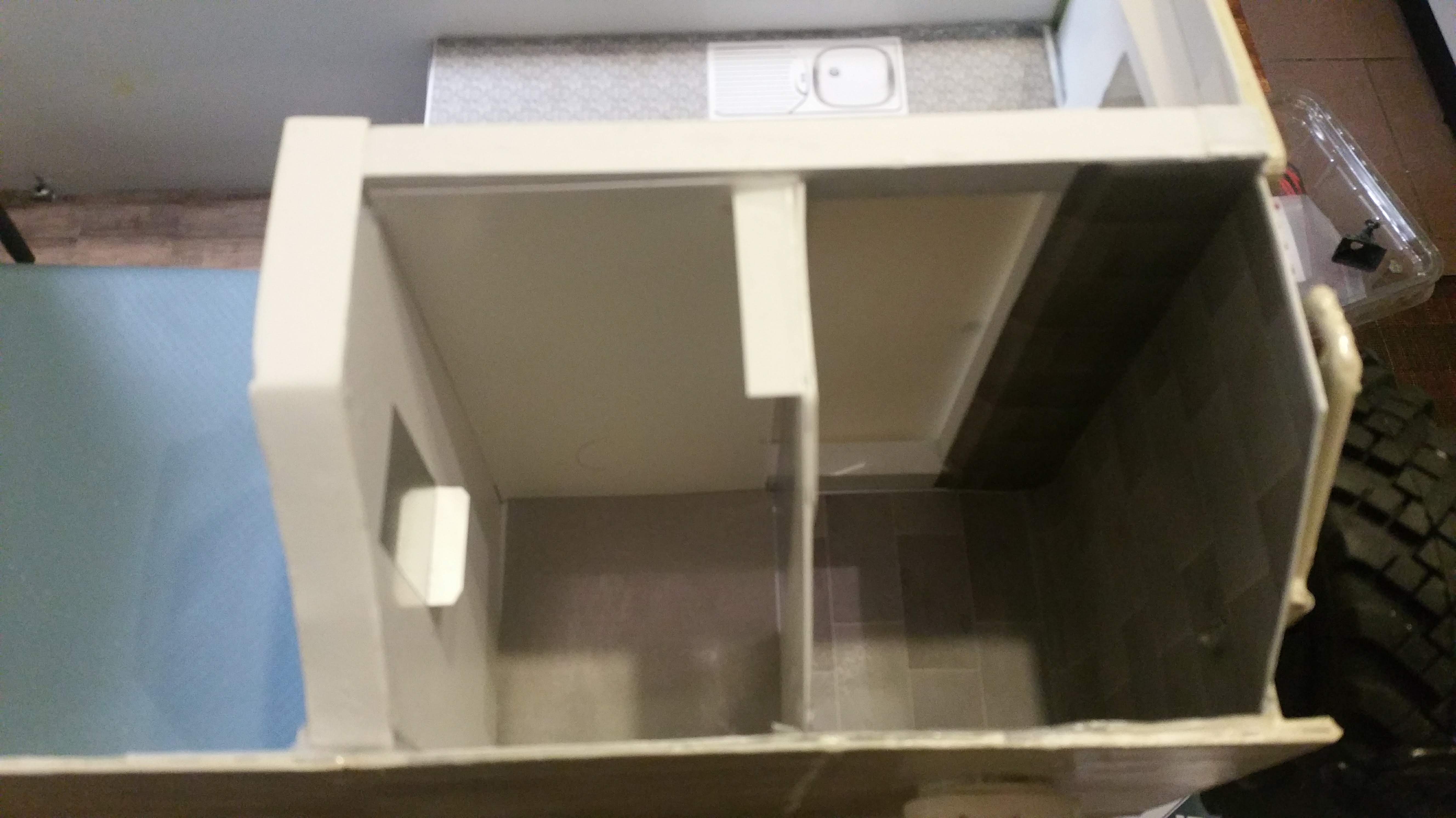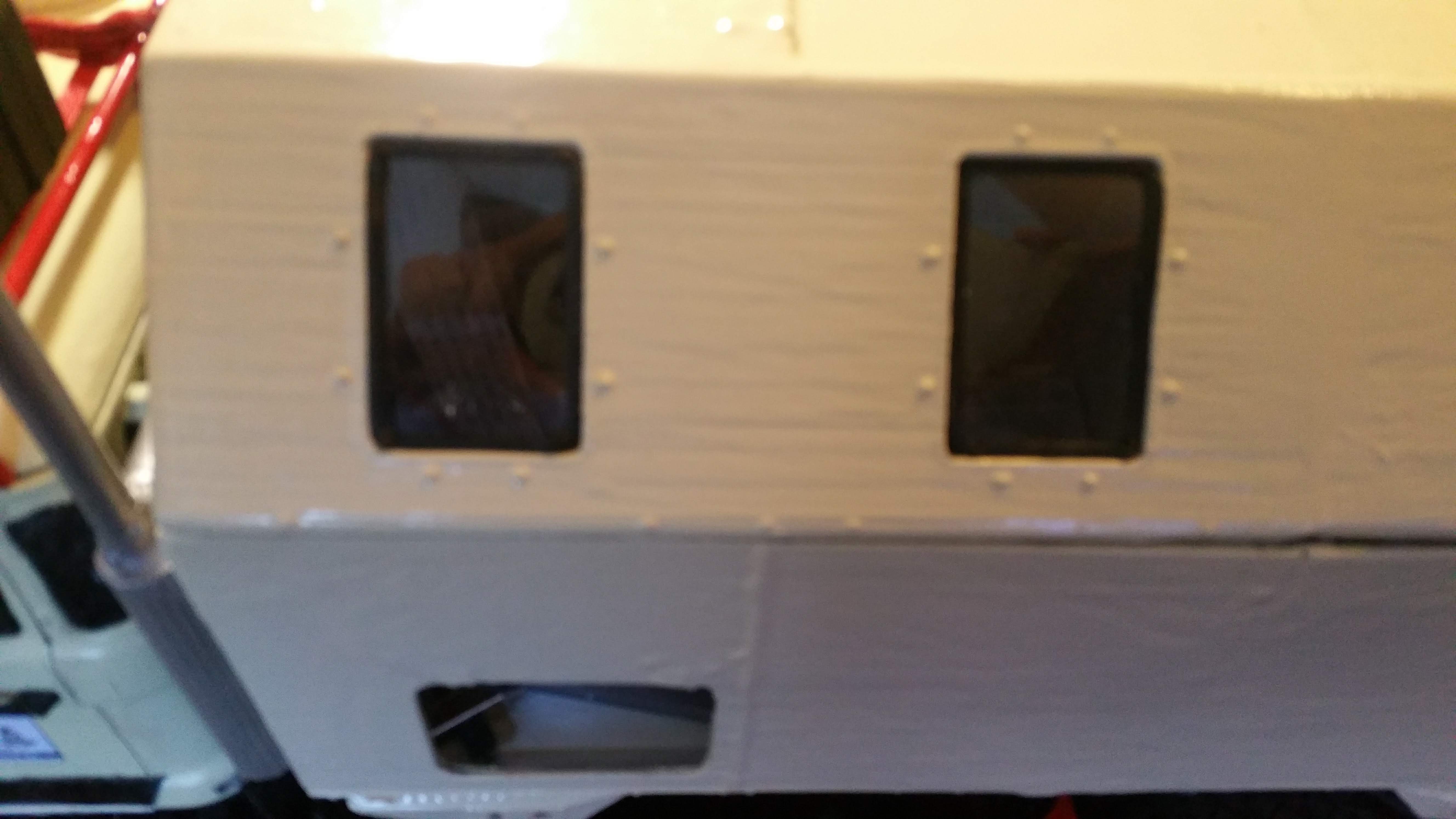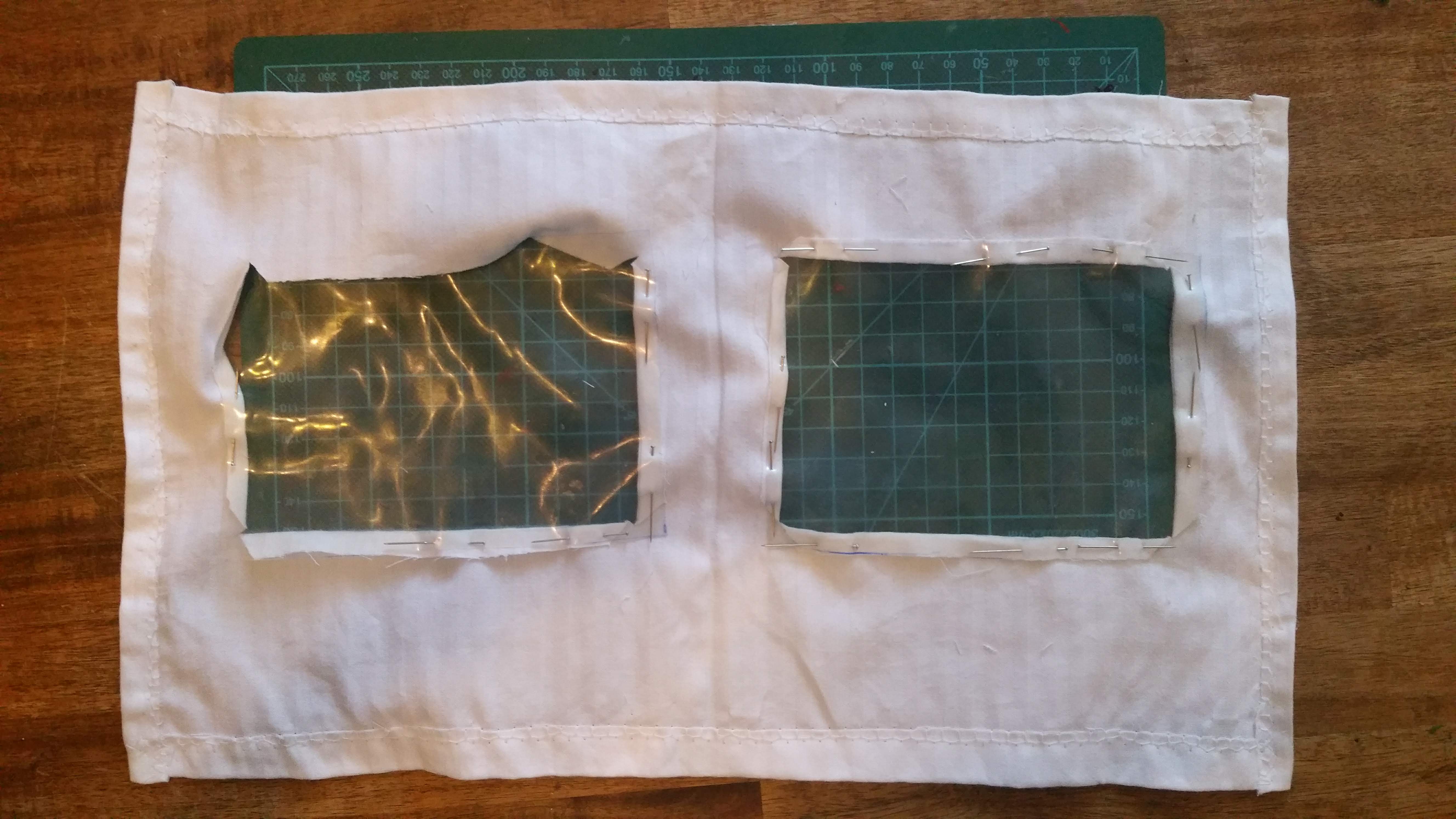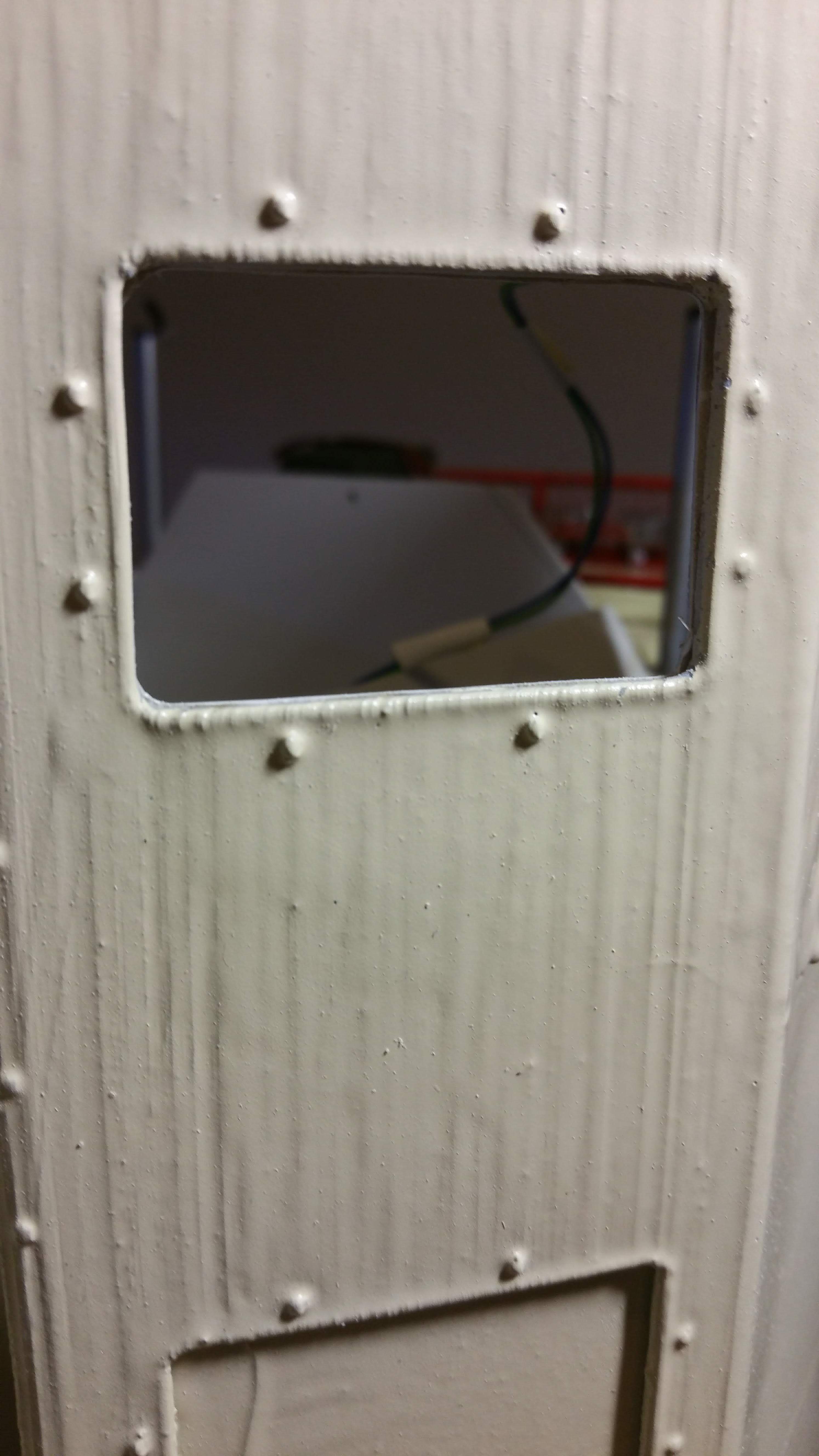 Die Scheiben wurden eingesetzt, diese wurden aus Kunststoffverpackungen geschnitten, Schmutzfänger aus Planenstoff.