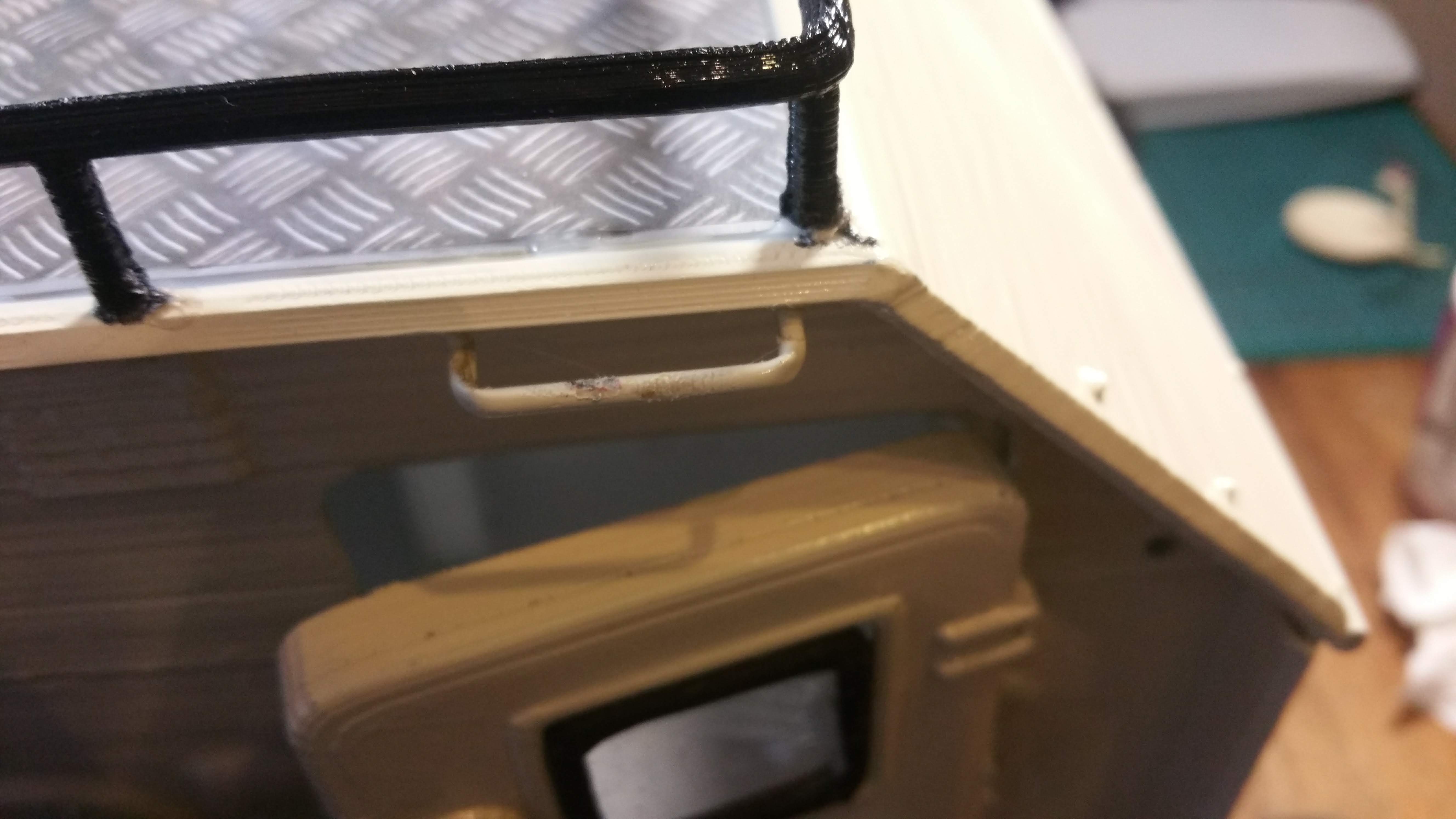 Tür und Haltegriff am LAK angebaut, Geländer auf dem LAK aufgesetzt.