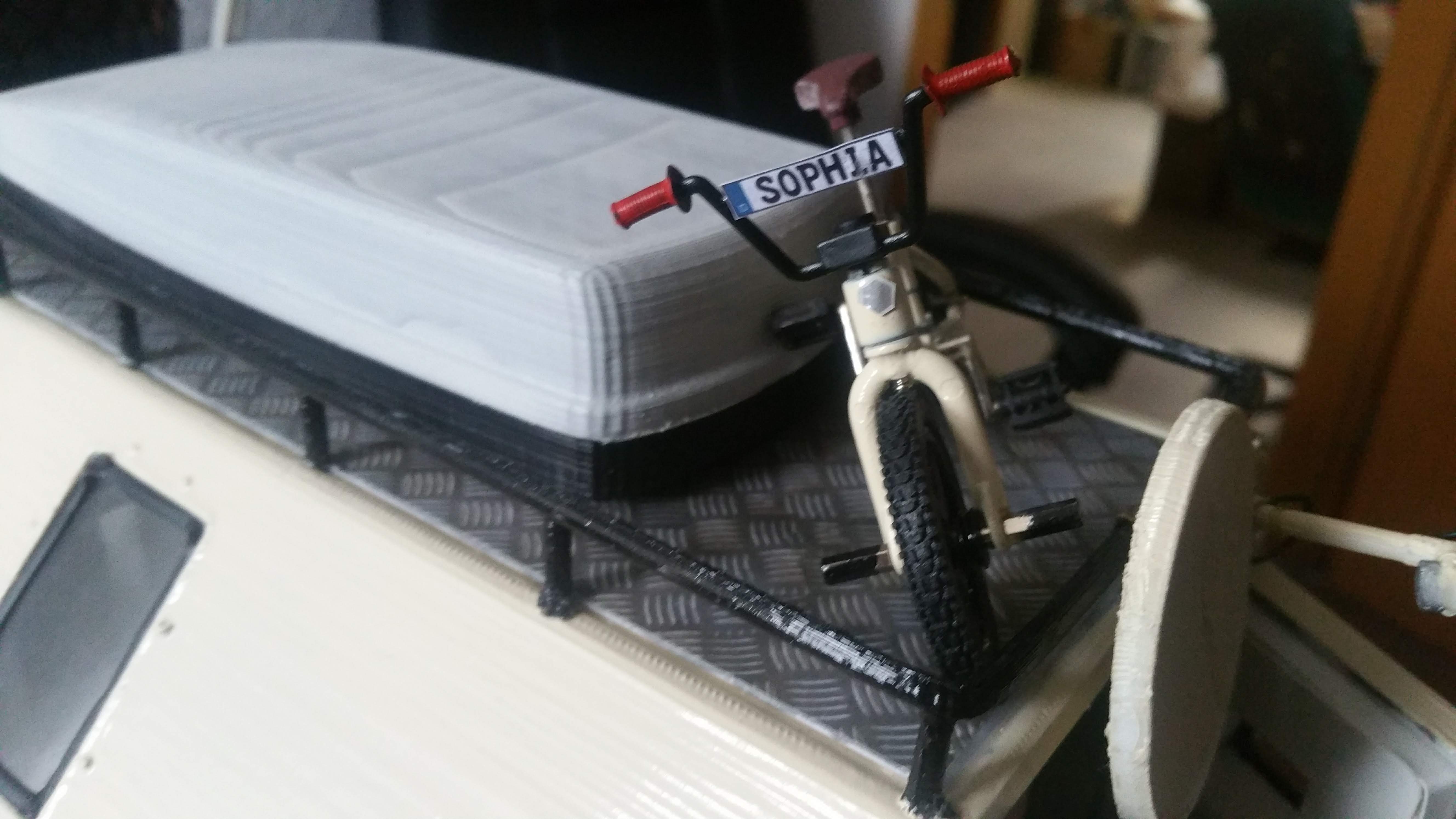 Anprobe Dachbox und Kinderfahrrad.