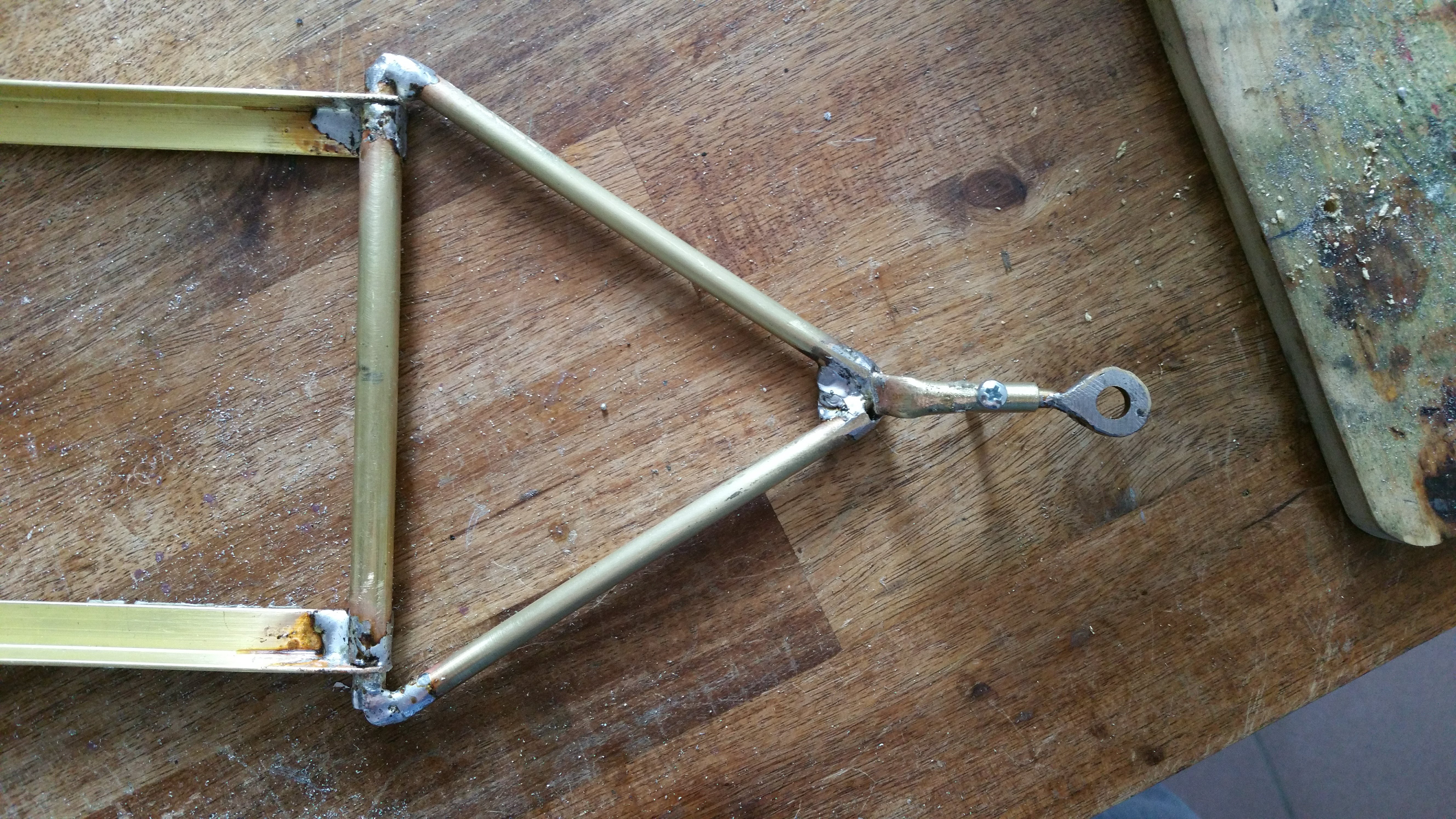 Längsträger für Rückleuchten aus Messingprofilen.
