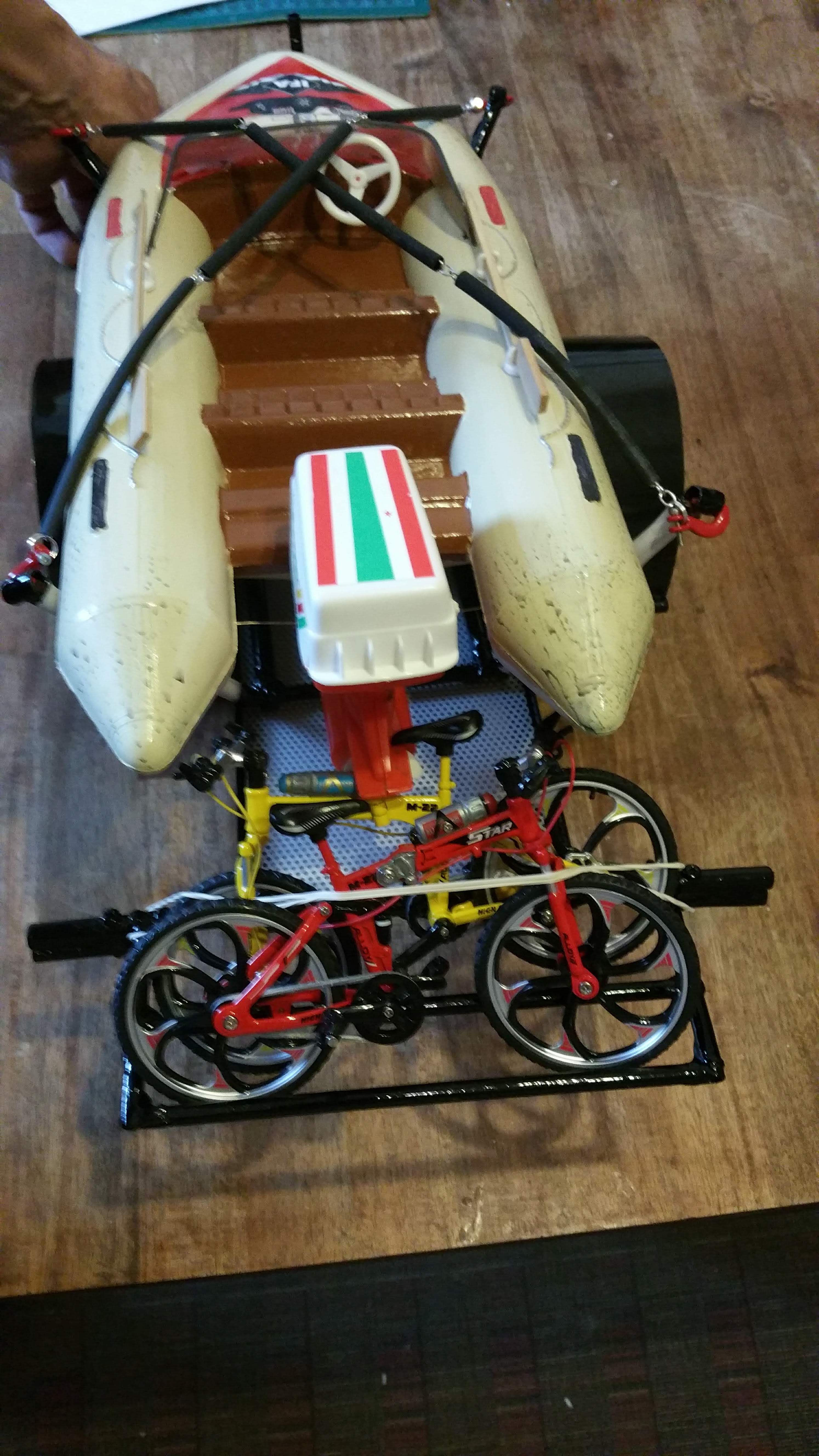 Die Ladung für den Anhänger, ein Schlauchboot und Fahrräder.