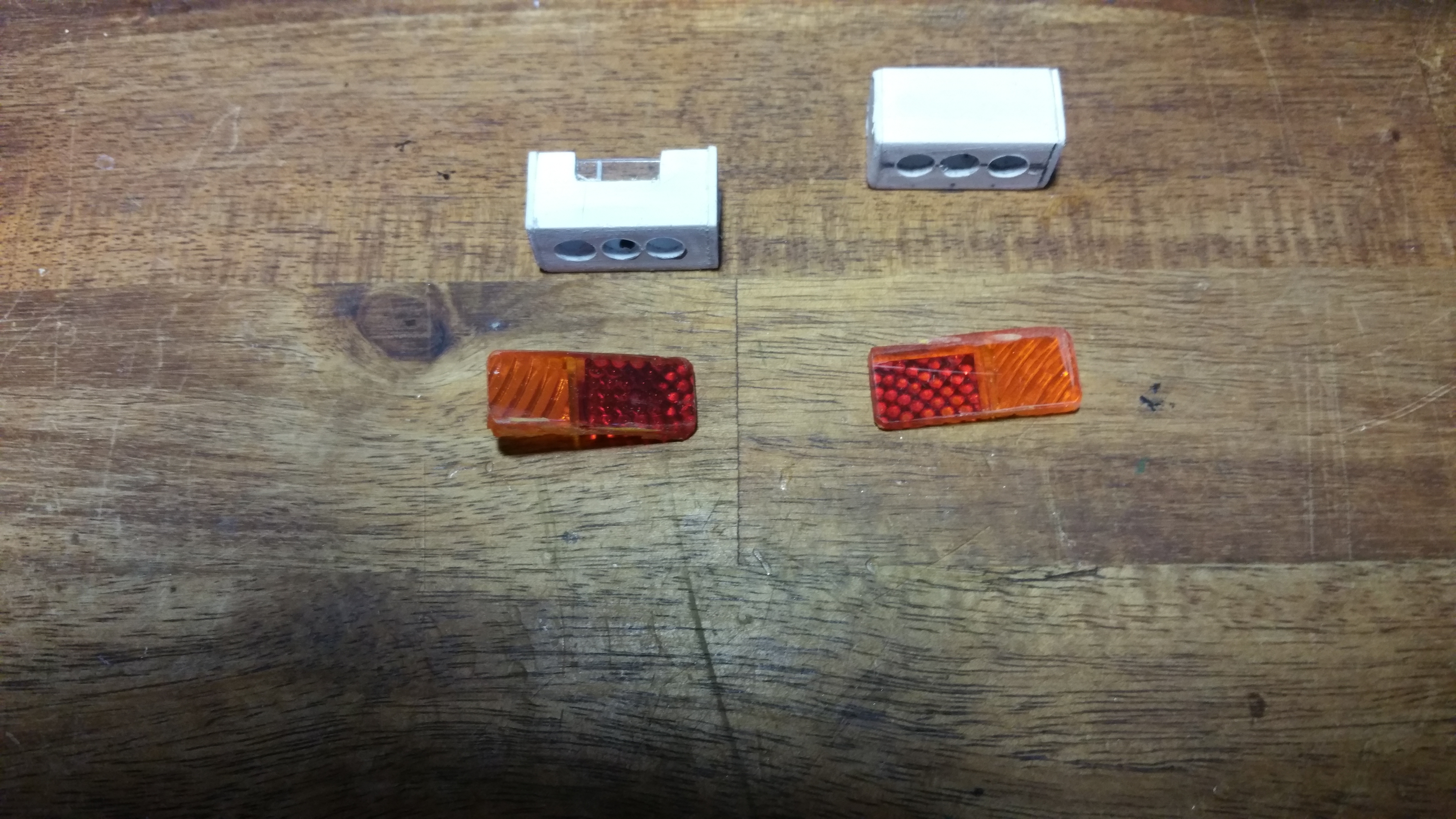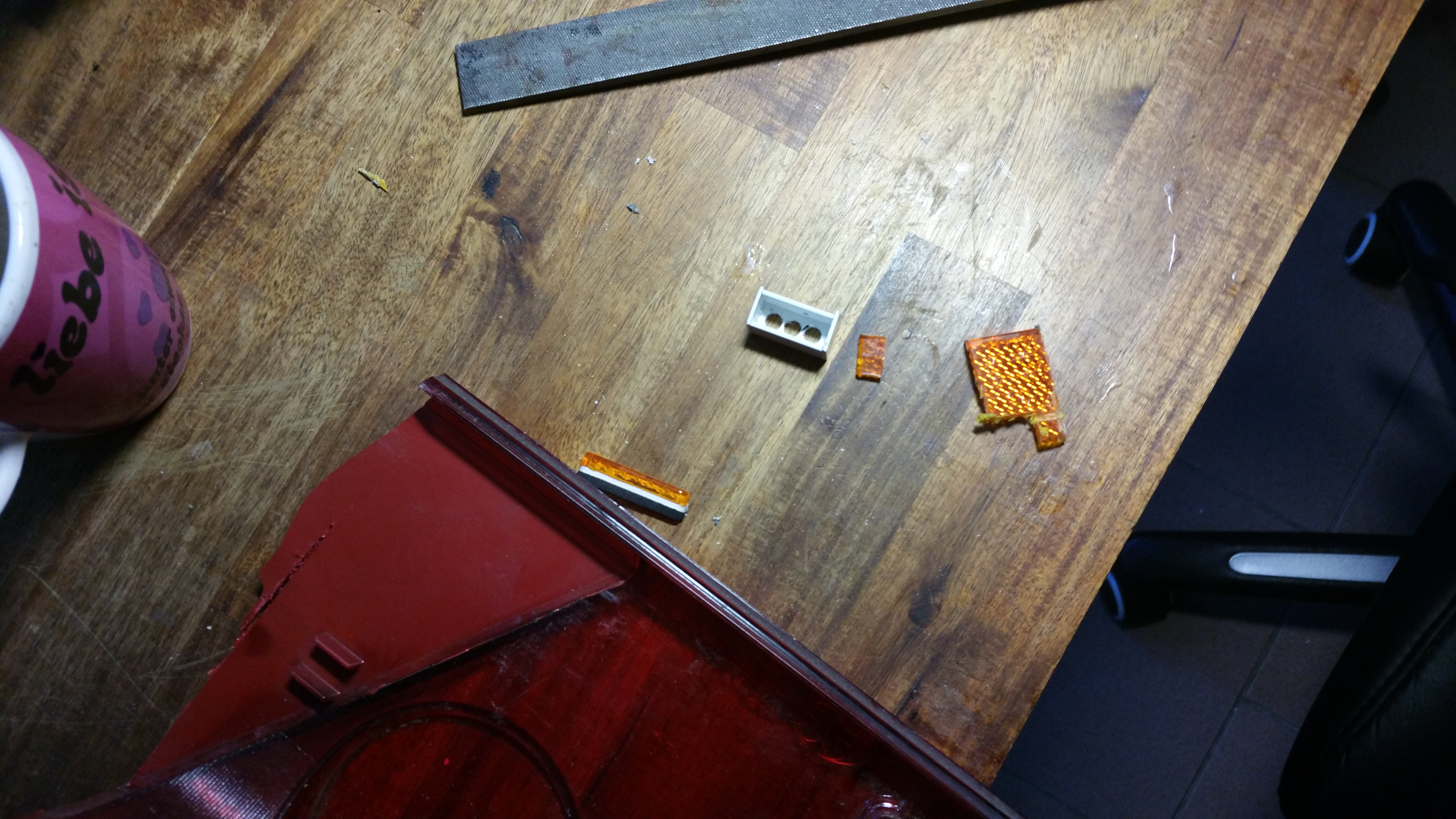 Rücklichter aus einer defekten Rücklichtstreuscheibe und Kunstoff U - Profilen,