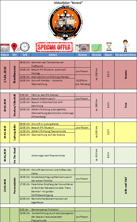 Es war eine sehr schöne Aktion, der Konvoi und das Treffen waren ein Highlight in der IFA-Tours Gemeinschaft. Es war eine sehr harmonische und familiäre Atmosphäre. Alle Teilnehmer möchten sich an dieser Stelle noch einmal recht herzlich bei den Organisatoren dieser Veranstaltung bedanken.
