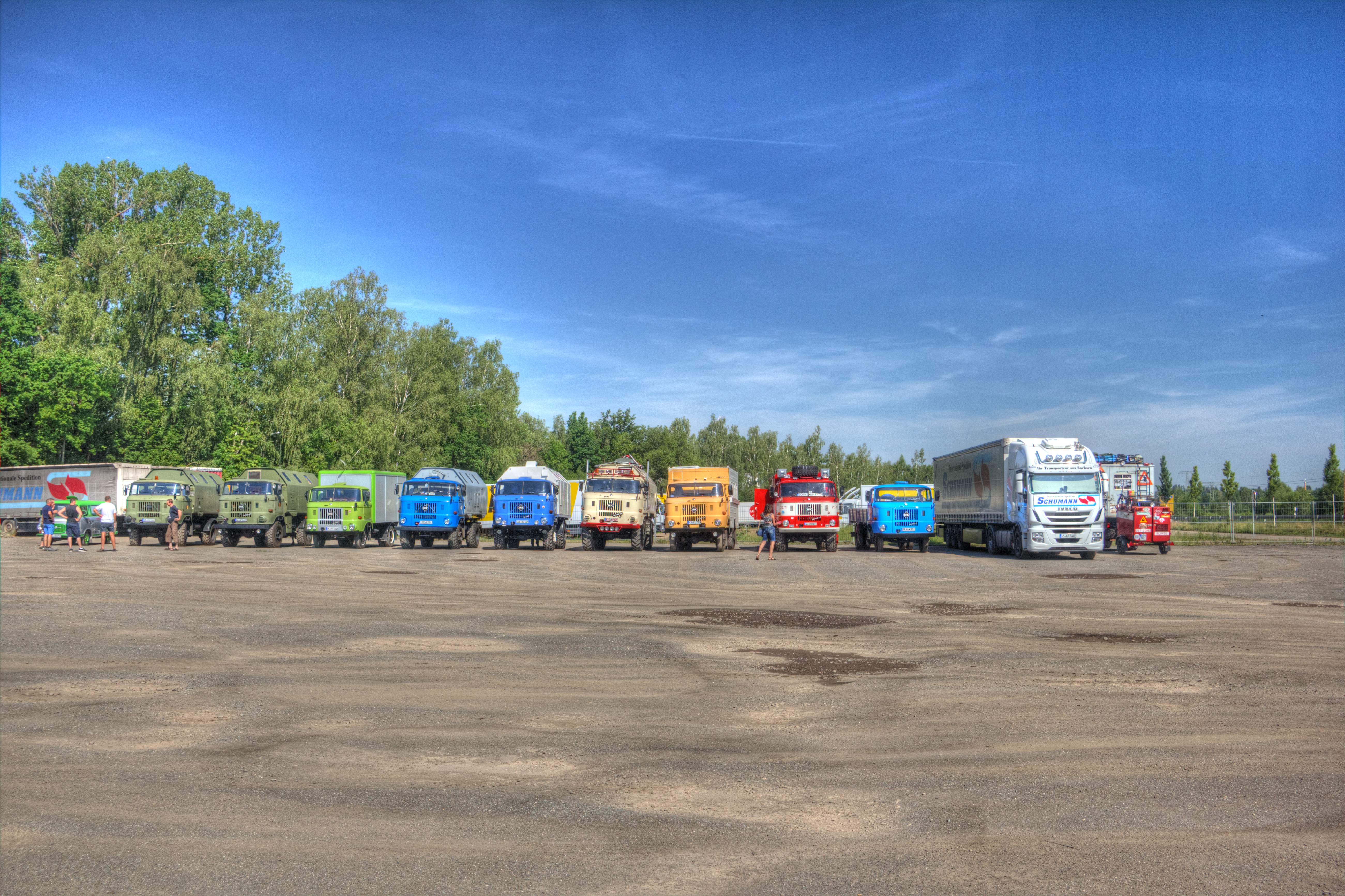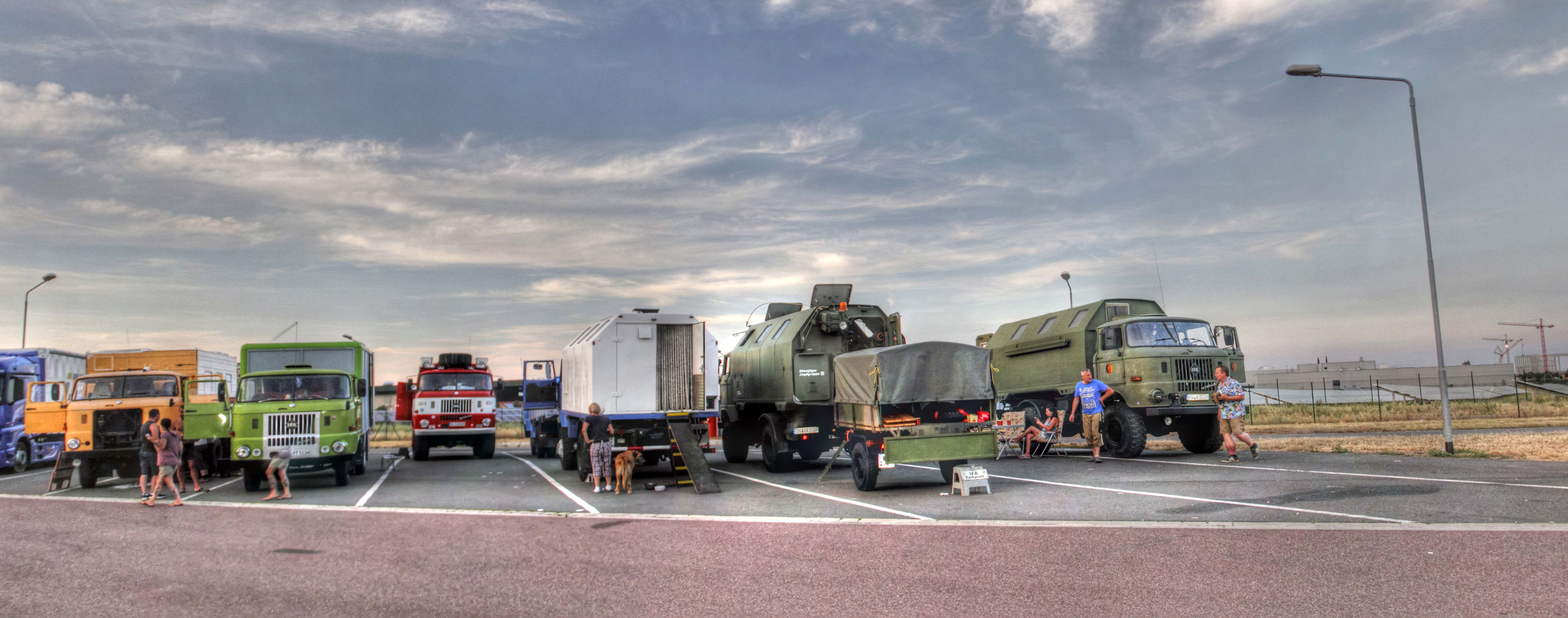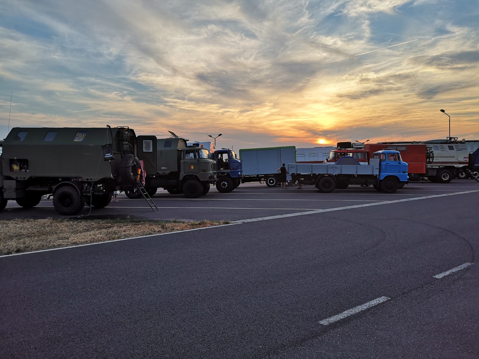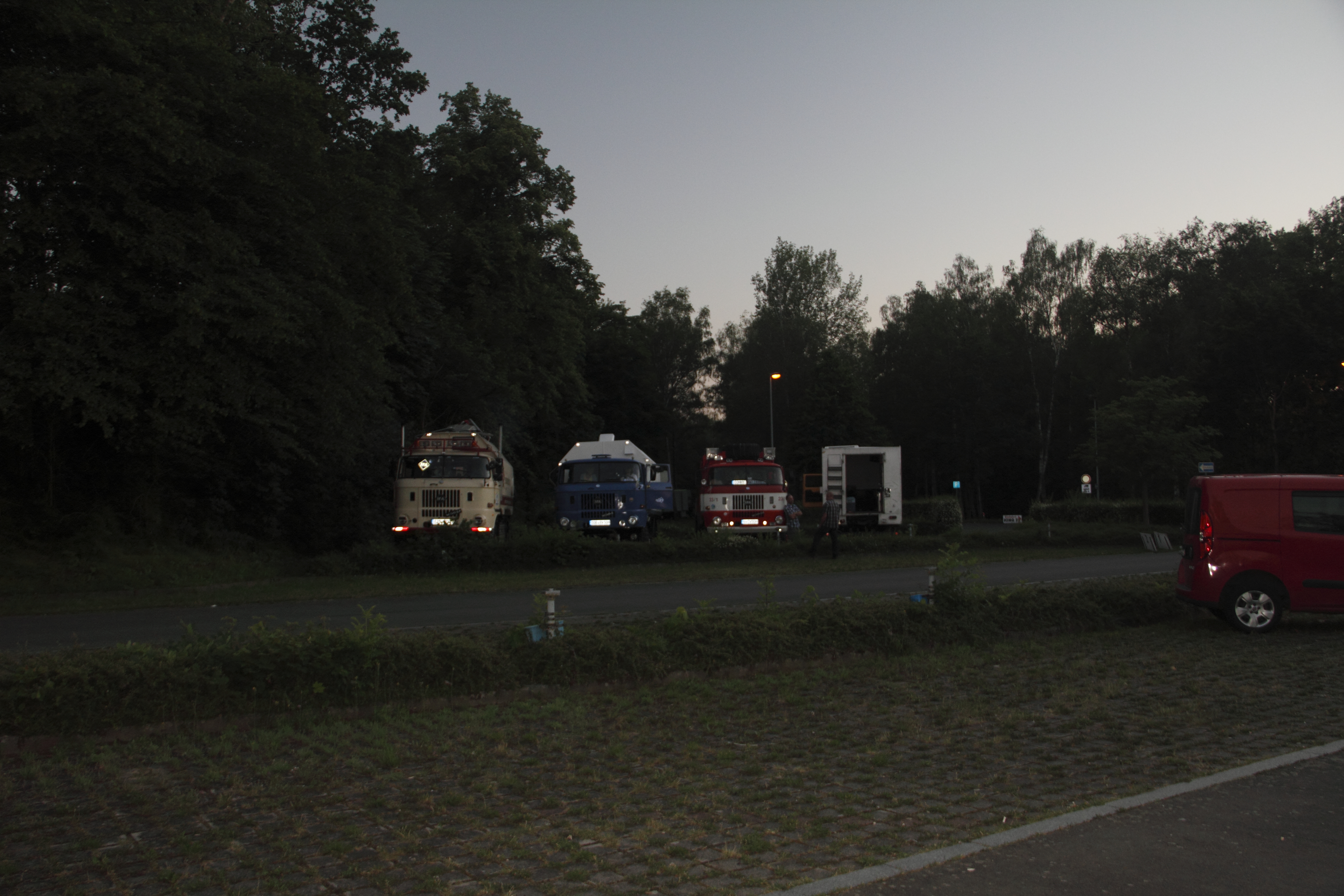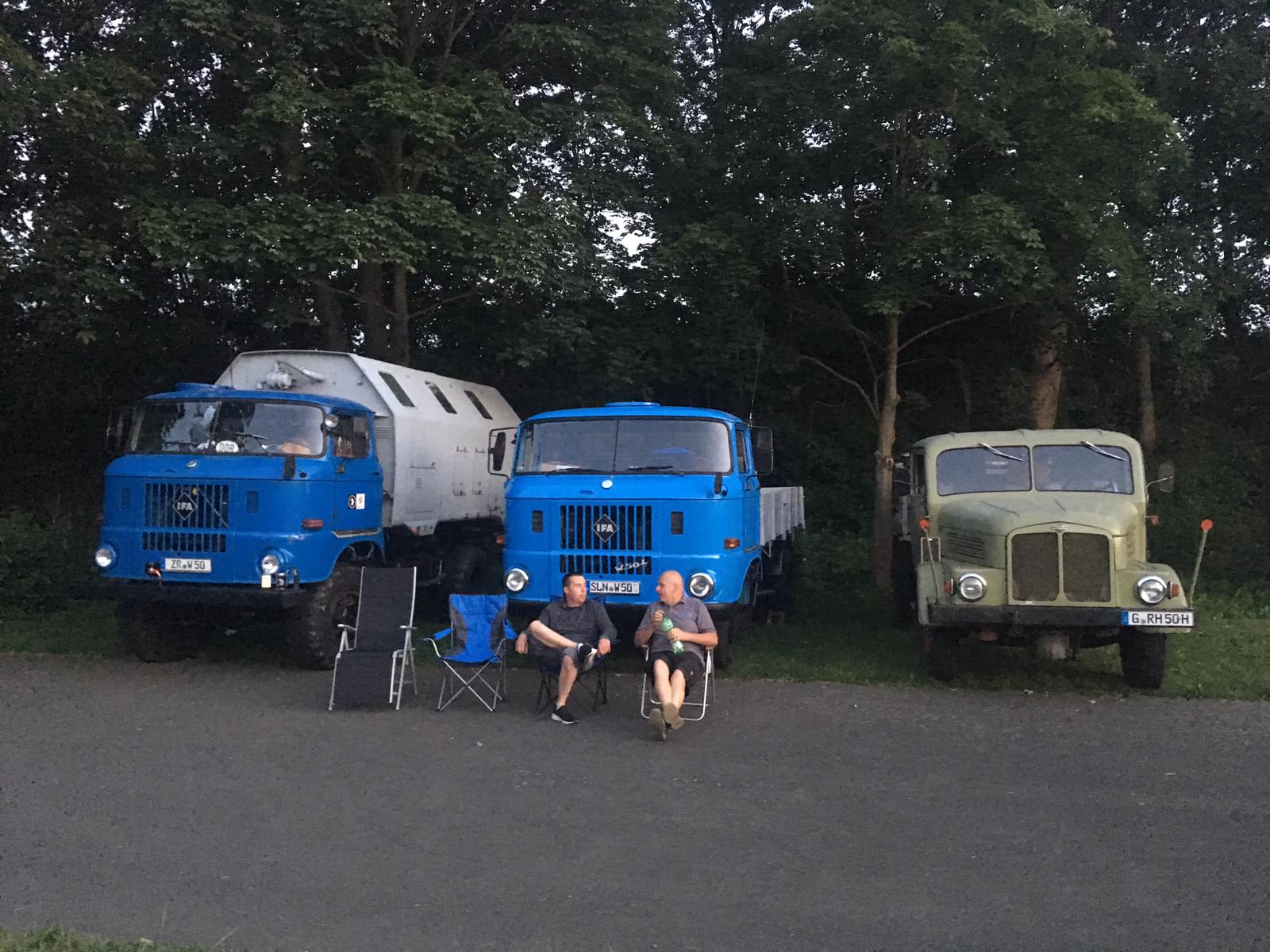 Es war bereits später Nachmittag, als der Konvoi Richtung Norden aufbrach. In den Abendstunden wurde das IFA-Tours Camp auf einem Parkplatz nähe Bitterfeld erreicht.