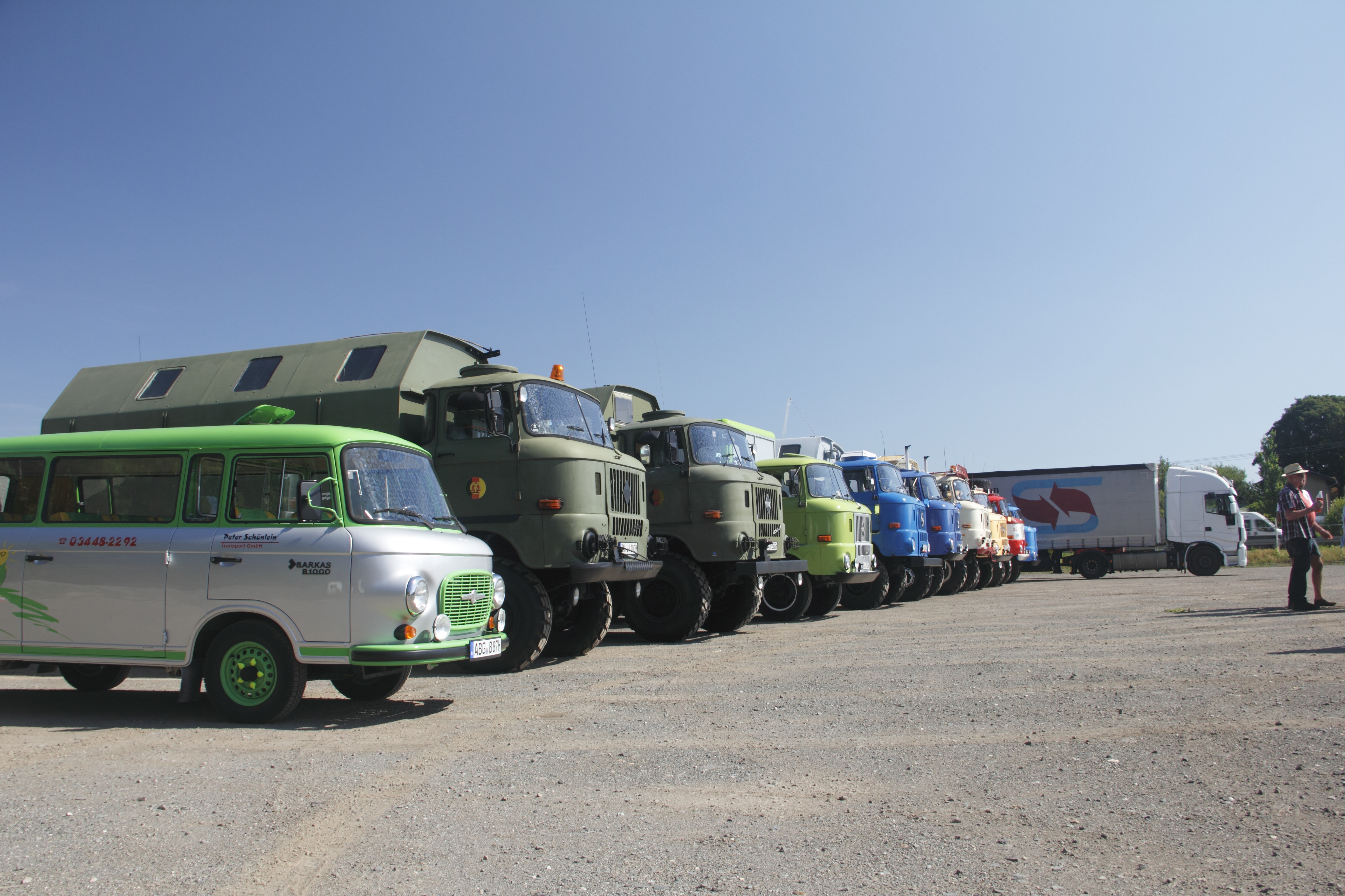 Auf dem Gelände der Oldtimersammlung von Herrn Poller wurden die Teilnehmer des IFA-Konvois herzlich in Empfang genommen und sogleich mit der Besichtigung der alten Schätzchen begonnen. Zum Großteil wurden hier Vertreter der Nutzfahrzeuge aus den ehemaligen Oststaaten wie z. B. Tatra, Jelcz, Skoda, H6, S4000, W50 usw. gezeigt, aber auch alte Fabrikate des Westens, wie Käble etc.. Die Fahrzeuge waren eine Augenweide und teilweise in besseren Zustand wie zur Zeit der Herstellung.