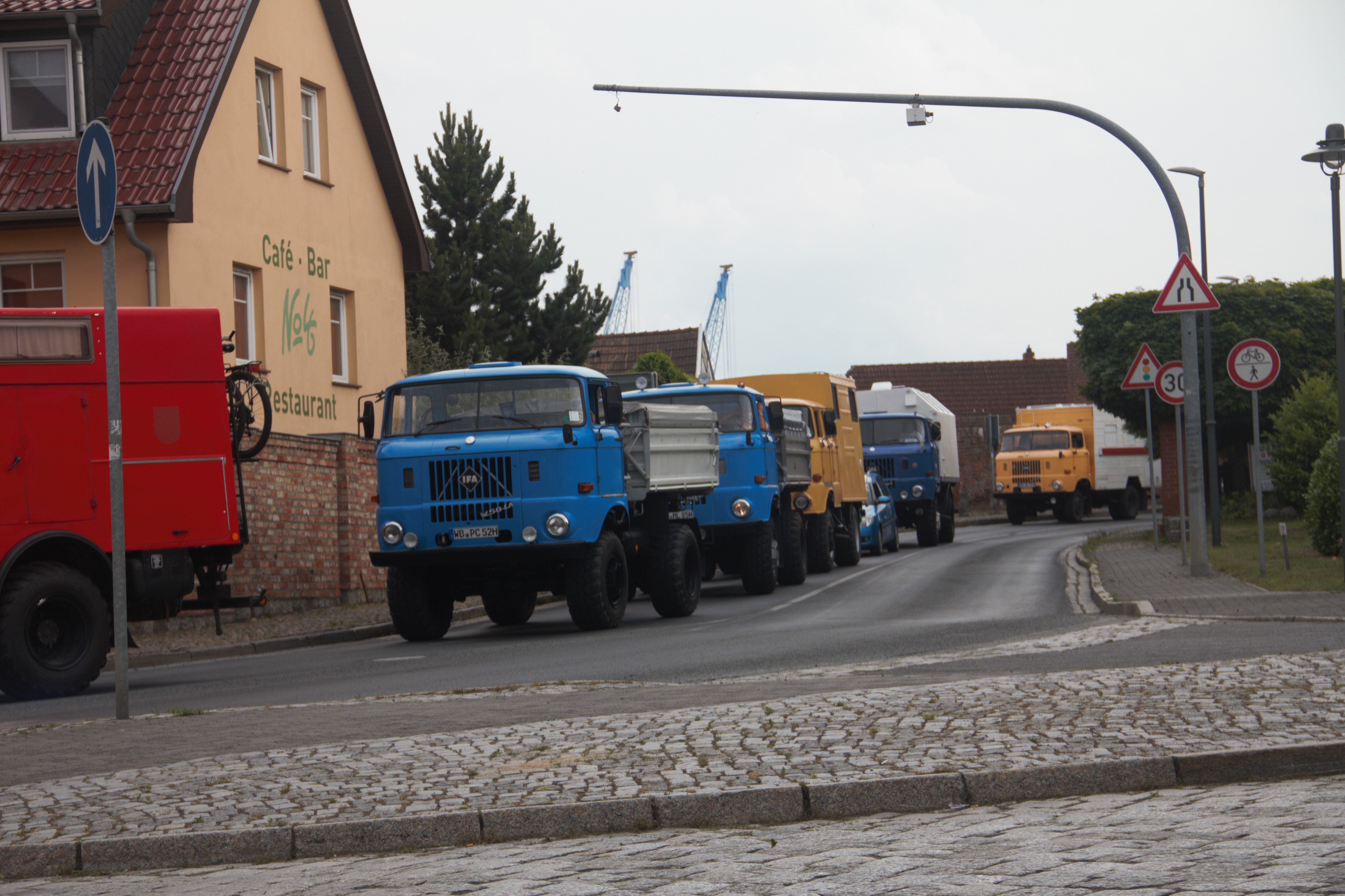 Am nächsten Morgen sammelten sich die Fahrzeuge des Konvois, welcher jetzt auf 10 Fahrzeugen angewachsen war, und es ging weiter Richtung Werdau Stadtzentrum. Ein weiterer zugereister Teilnehmer mit seiner IFA W50 Feuerwehr konnte sich leider nicht an den Konvoi anschließen, da sich dieser die Dieselpest eingefangen hatte.