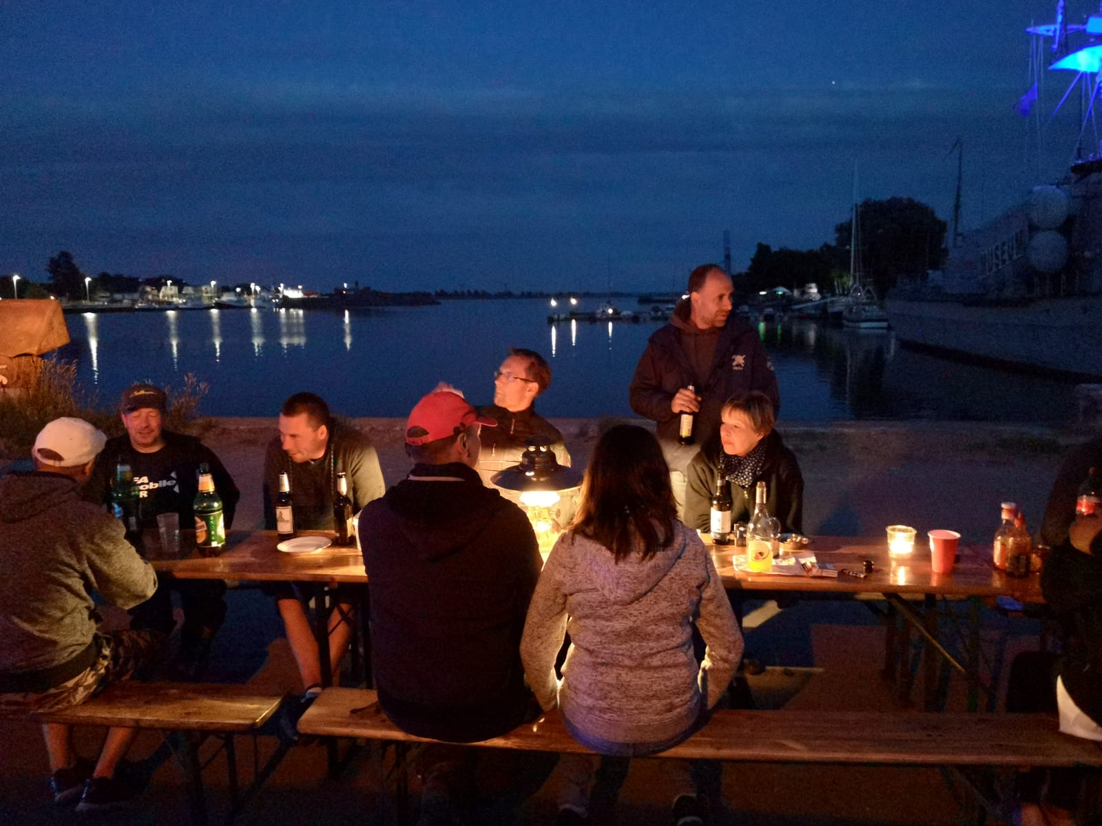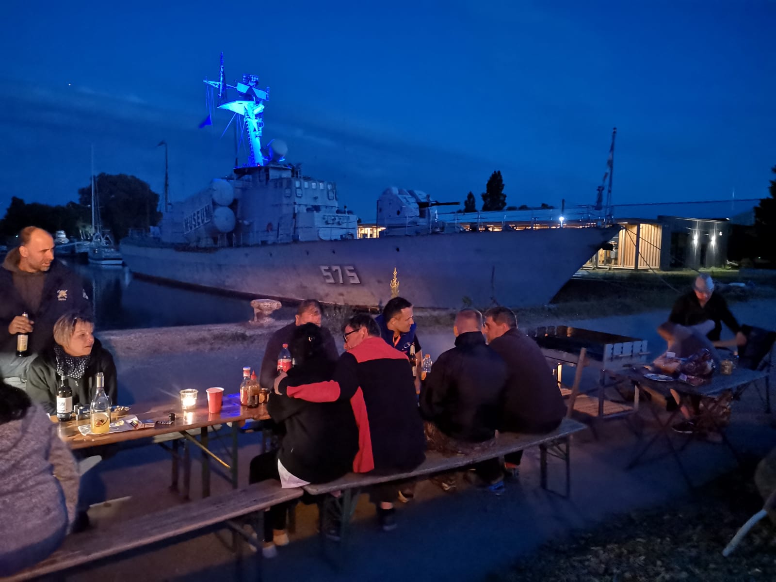 Zuerst gab es am Abend noch einiges Organisatorisches, sowie eine Begrüßung durch die Marinekameradschaft Bug. Der Tag fand noch einen tollen Ausklang mit schöner abendlicher Hafenstimmung. Man hatte sich viel zu erzählen und saß so gemütlich bei Lagerfeuer, Bier und Grill bis zum nächsten Tag zusammen.